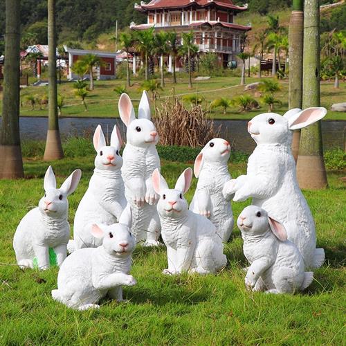 户外景区草坪玻璃钢仿真兔子摆件落地花园装饰庭院幼儿园动物雕塑