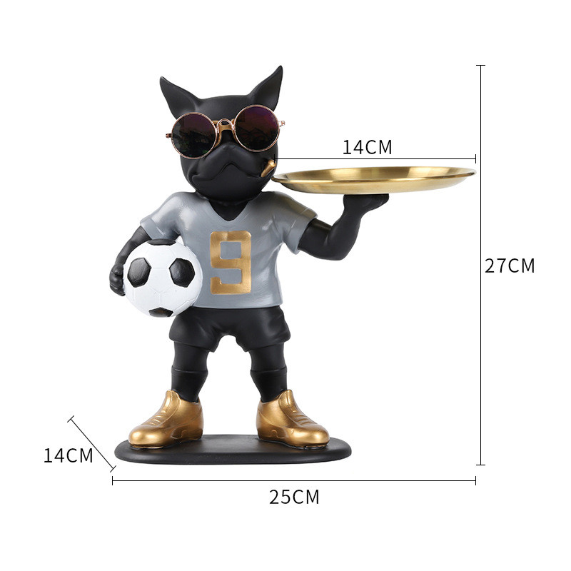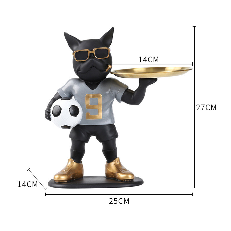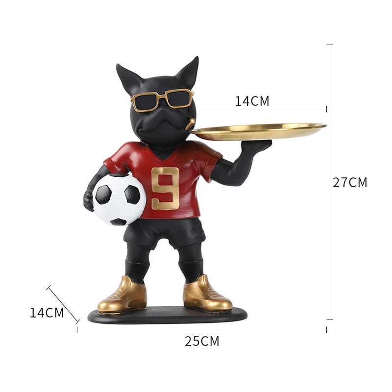 足球法斗狗家居装饰创意书桌面收纳托盘树脂工艺品斗牛犬摆件
