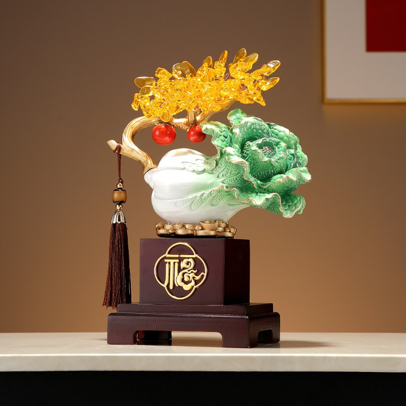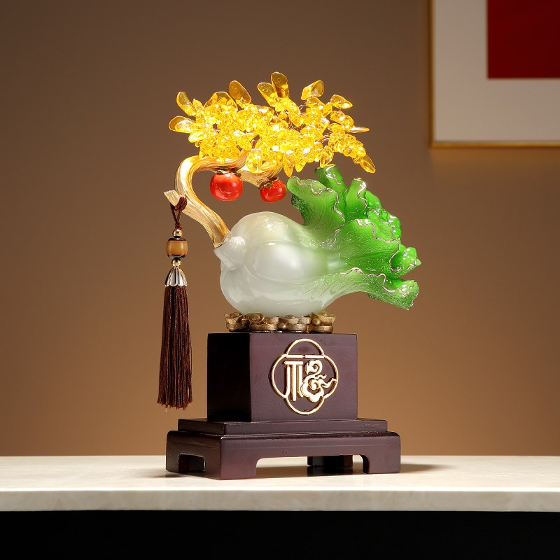 新中式黄水晶招财树仿玉白菜木座装饰摆件客厅玄关装饰品开业礼物