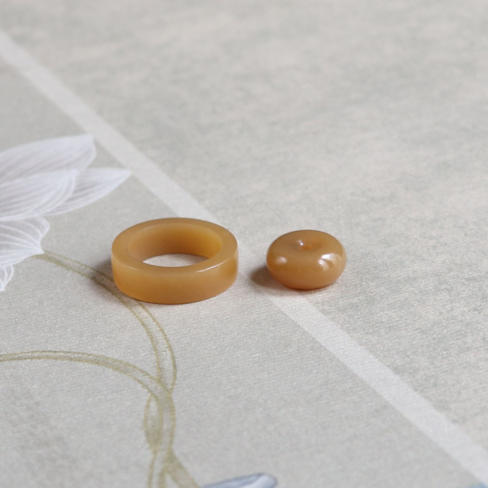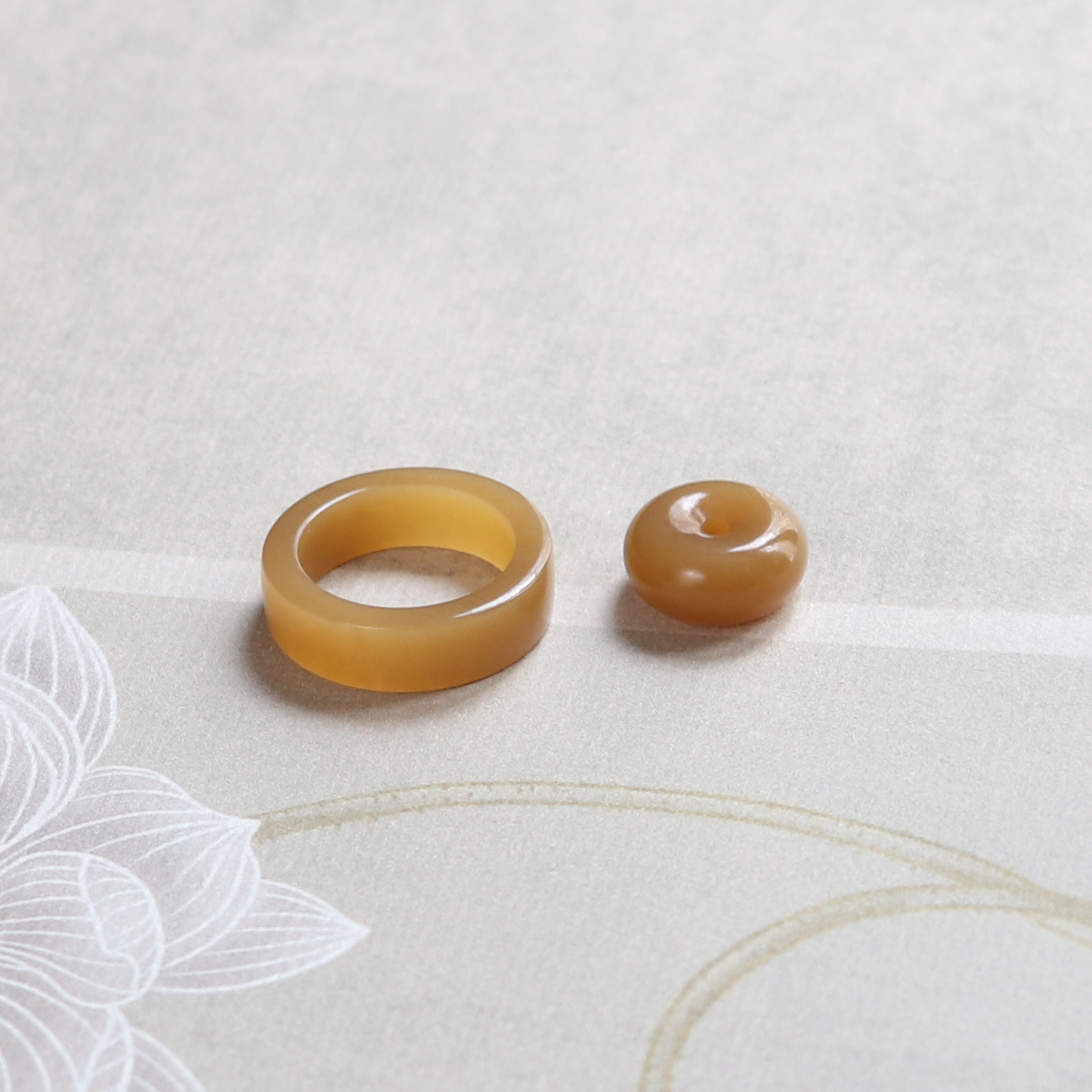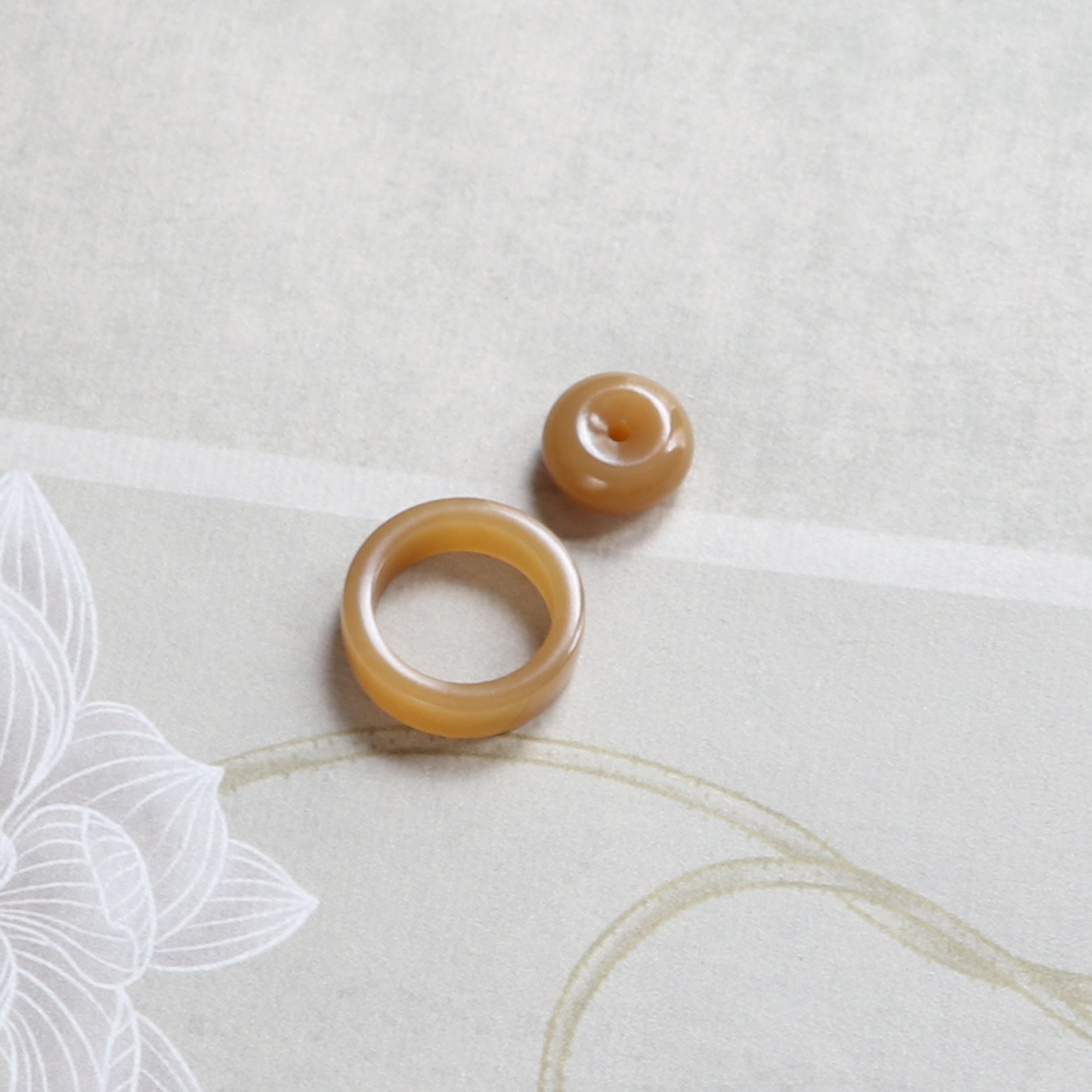 12号素圈指环天然和田玉糖玉直切戒指子母扣吊坠平安扣配饰带证书