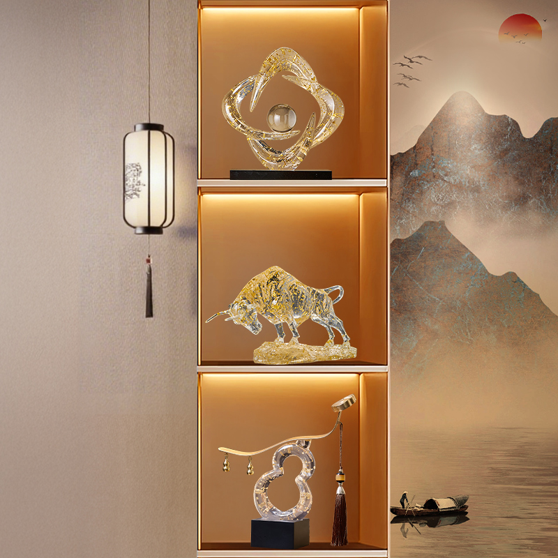 风生水起家居客厅电视柜玄关玻璃柜子轻奢高级感酒柜摆件装饰品