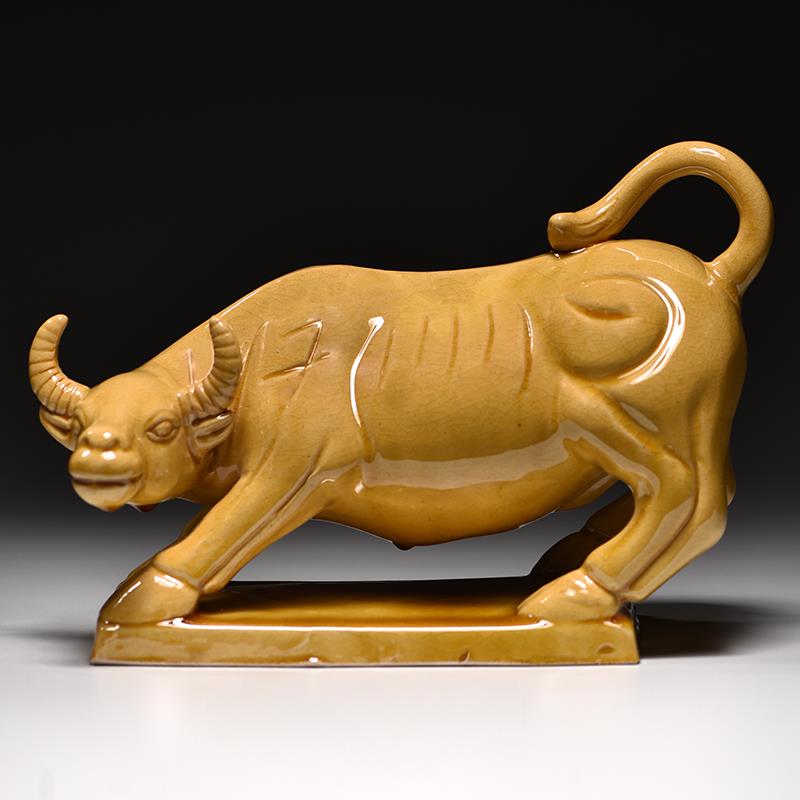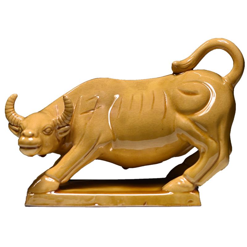 黄色陶瓷牛摆件十二生肖黄牛吉祥物客厅卫生间正北缺角补角工艺品