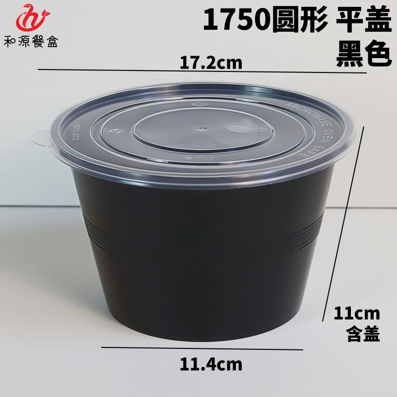 美式一次性餐盒麻辣烫1250ml圆形打包盒碗带盖食品级塑料防盗外卖
