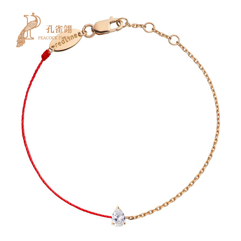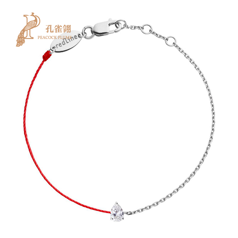 情人节redline红绳女士Altesse水滴形钻石白金半绳半链手链
