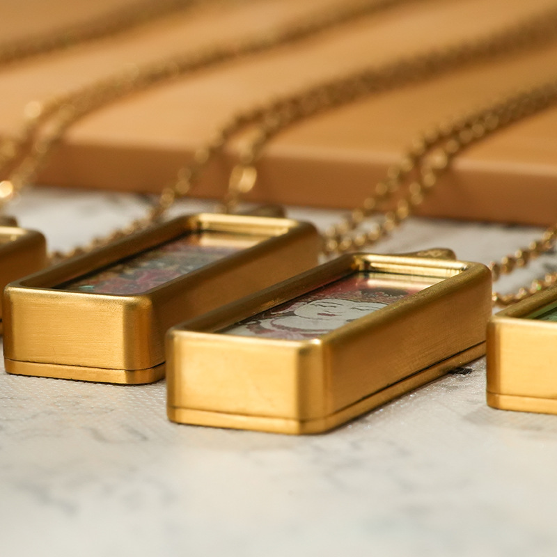 复刻唐卡五爷黄财本命文殊扎基拉姆绿度母吊坠盒嘎乌盒唐卡