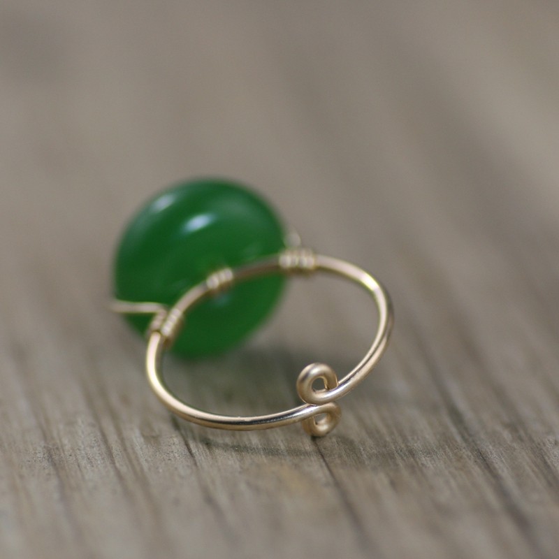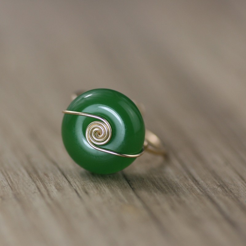 素元 深绿色平安扣转运珠戒指女14K包金原创设计活口食指环满包邮