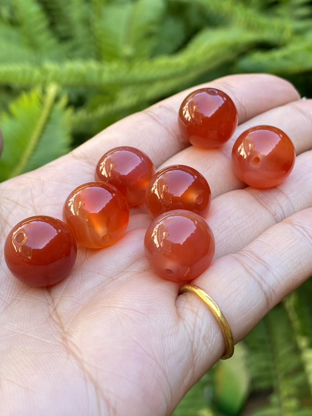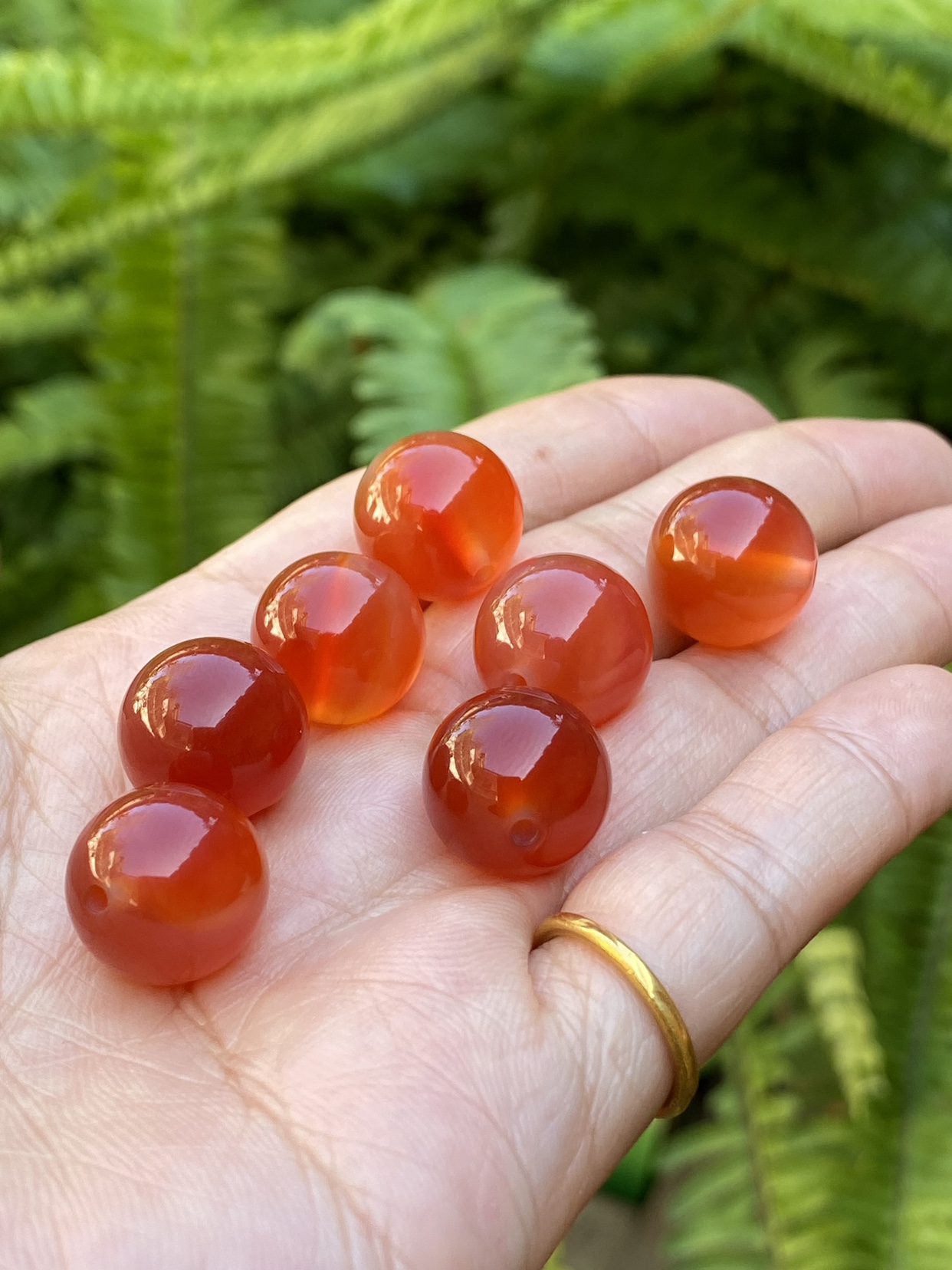 DIY散珠配件巴西纯天然红玛瑙散珠14mm单珠圆珠通透半宝石 单个价