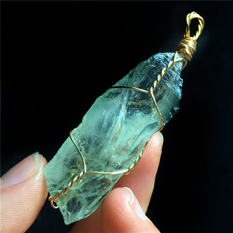 天然绿水晶绕丝原石吊坠骨干权杖锁骨链绿色标本鱼缸造景情侣饰品