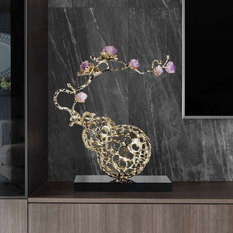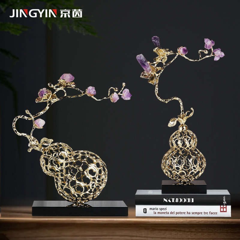 紫水晶葫芦轻奢装饰品办公室客厅玄关电K视柜酒柜桌面寓意好摆件