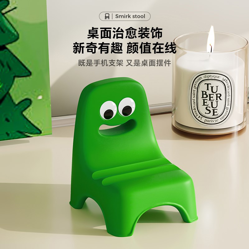 MSKA卡通小绿凳m手机平板支架创意装饰品办公室桌面摆件送女生礼