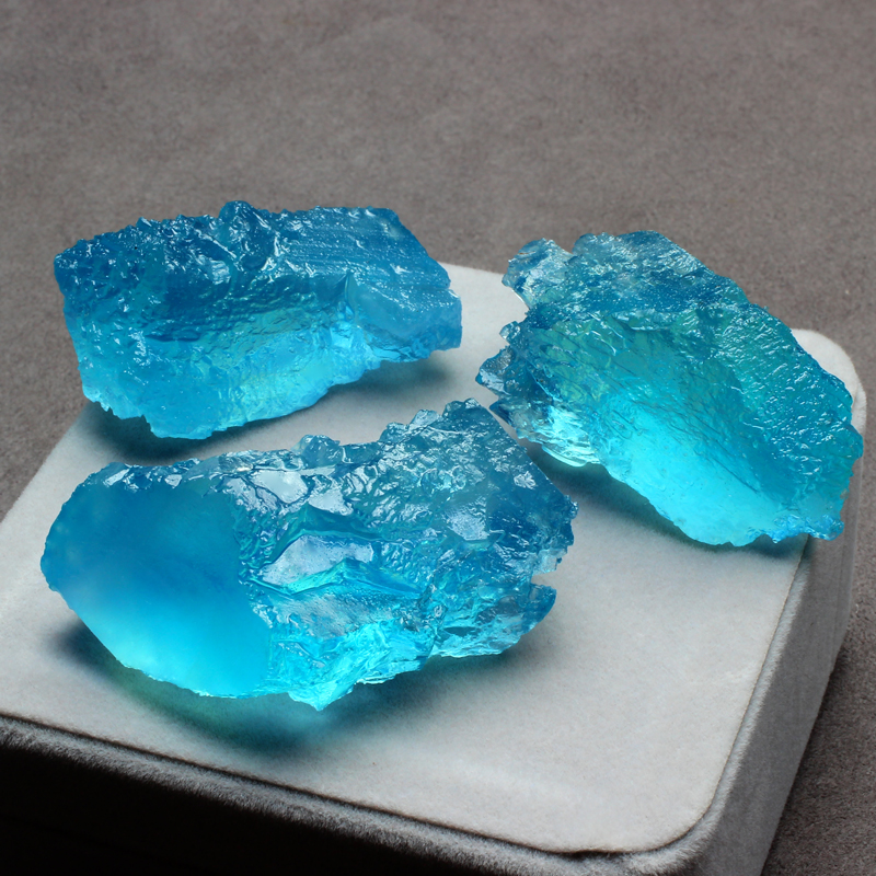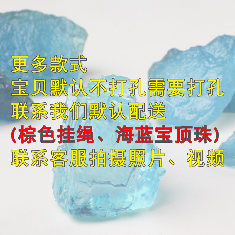 冰种深蓝海蓝宝石蓝色水晶原矿原石随形标本三月生辰石吊坠项链