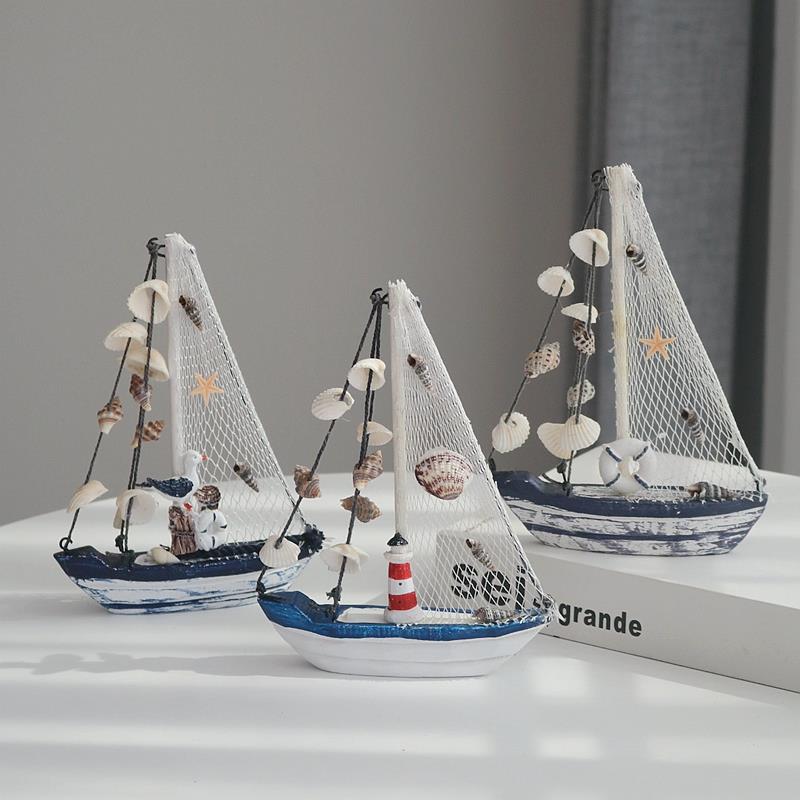 地中海帆船模型摆件一帆风顺木质小船工艺船家居装饰品海边纪礼品