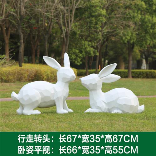 户外玻璃钢七彩兔子雕塑小区售楼处几何动物摆件园林景观草坪装饰