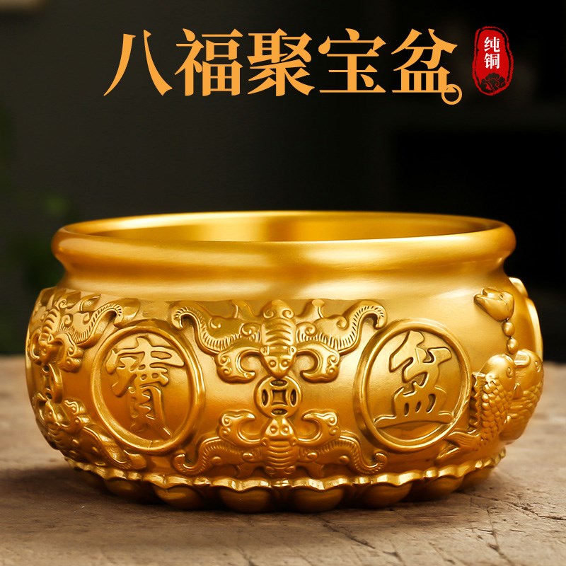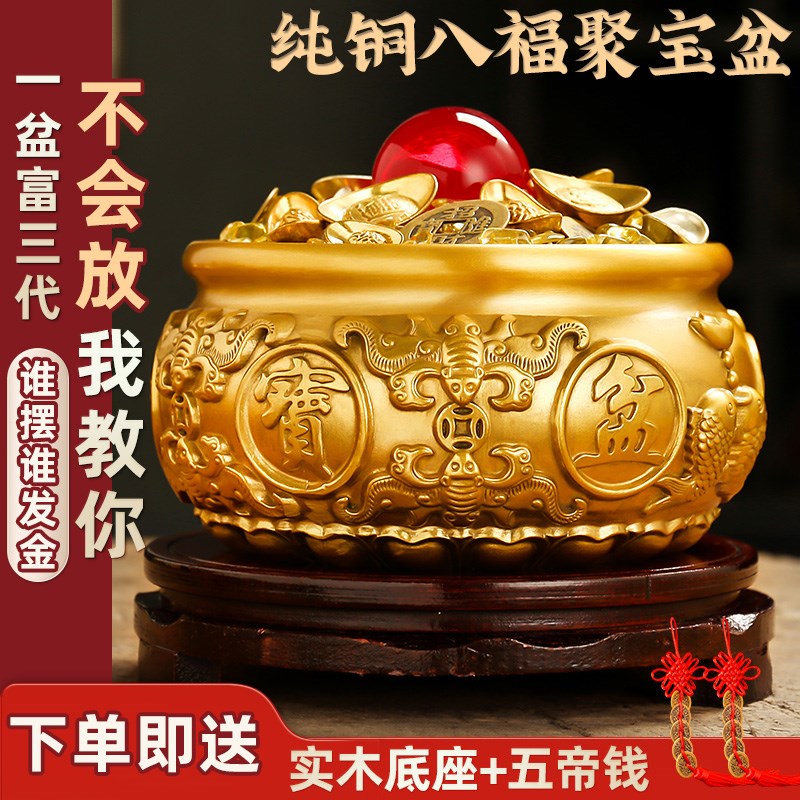 实心全黄铜聚宝盆摆件客厅黄铜米缸办公室酒柜店铺前X台存钱罐大