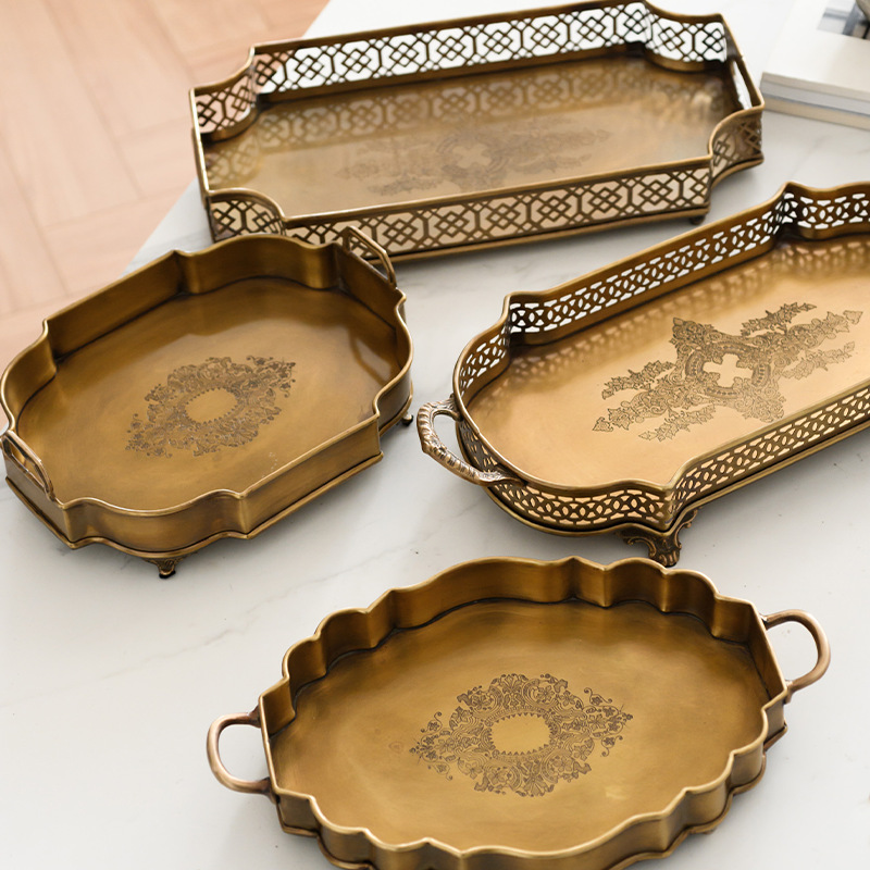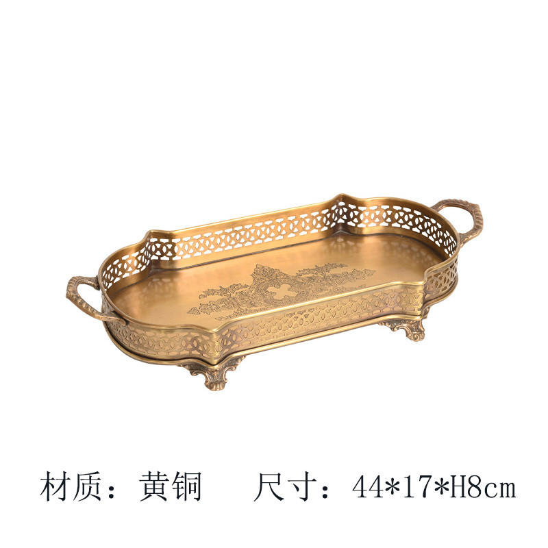 进口黄铜复古雕花镂空托盘摆件样板间双耳欧式花盆收纳桶冰桶装饰