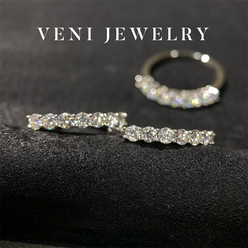 Veni珠宝 月光白茶 莫桑钻排戒钻石戒指七公主70分爆闪18K金叠带