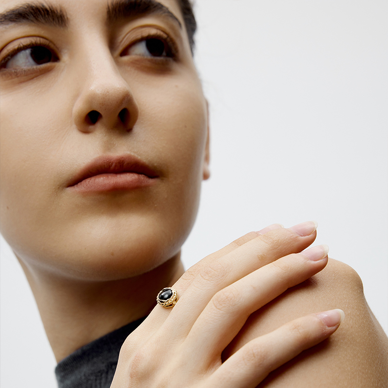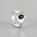 GOOGMO西西里娅系列轻奢小众S925银镀18K金黑玛瑙开口戒指环显白