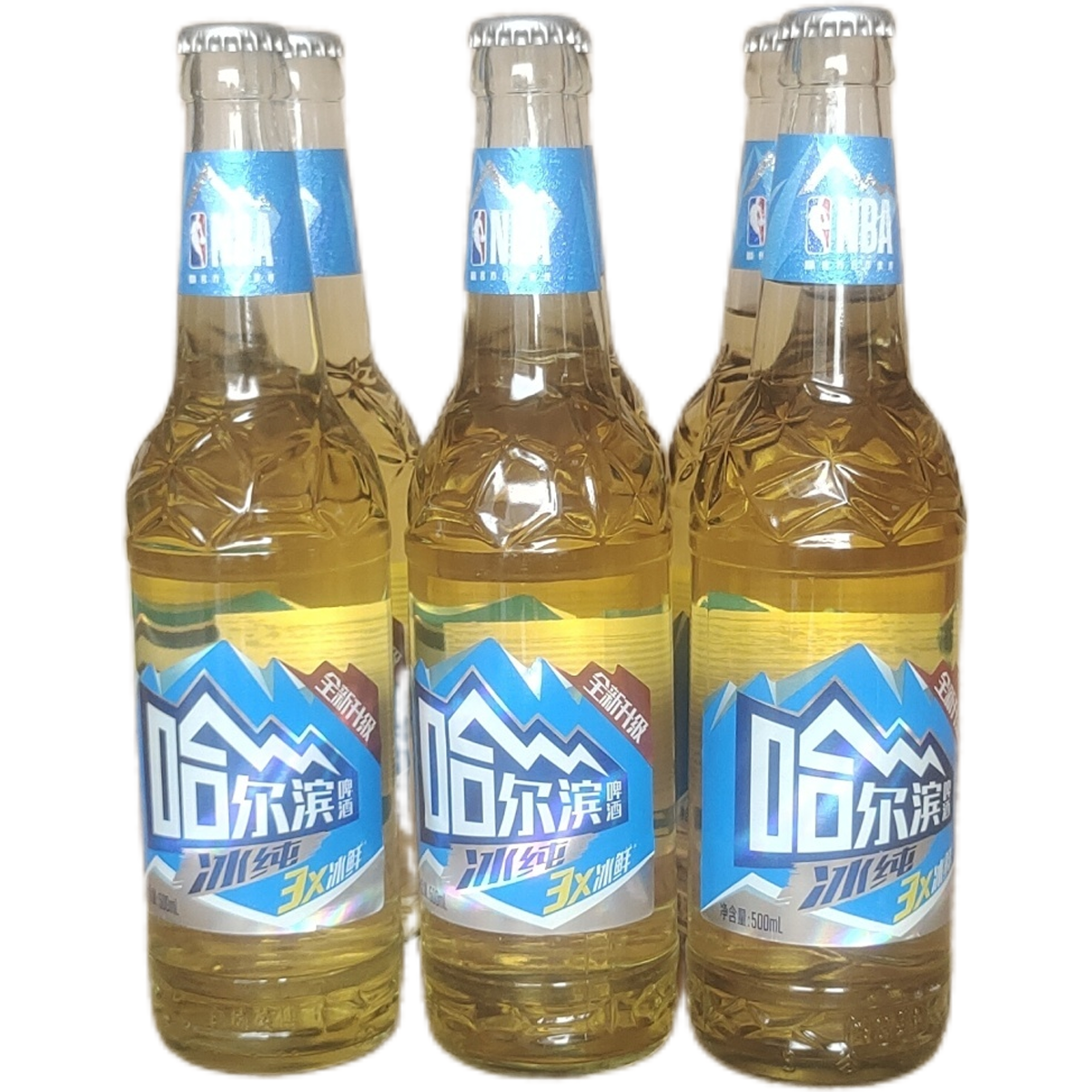 【假一赔十】 哈尔滨冰纯啤酒500ml*12瓶装 清滑爽口大玻璃瓶啤酒