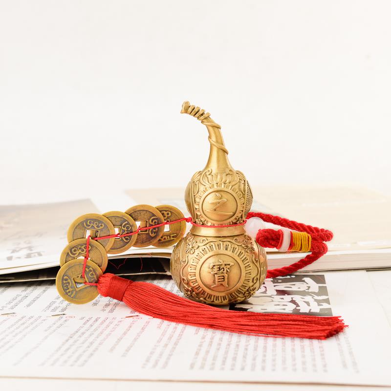 铜葫芦挂件铜钱五帝钱门对门黄铜八卦小号家居如意吉祥铜葫芦摆件