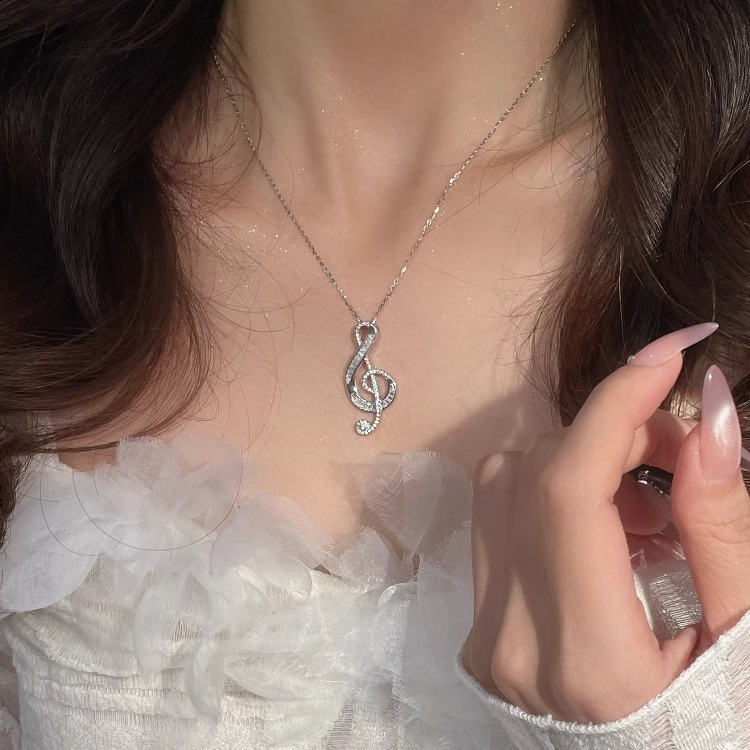 音符项链满钻纯银吊坠锁骨链女小众轻奢毛衣链高级感送女友闺蜜