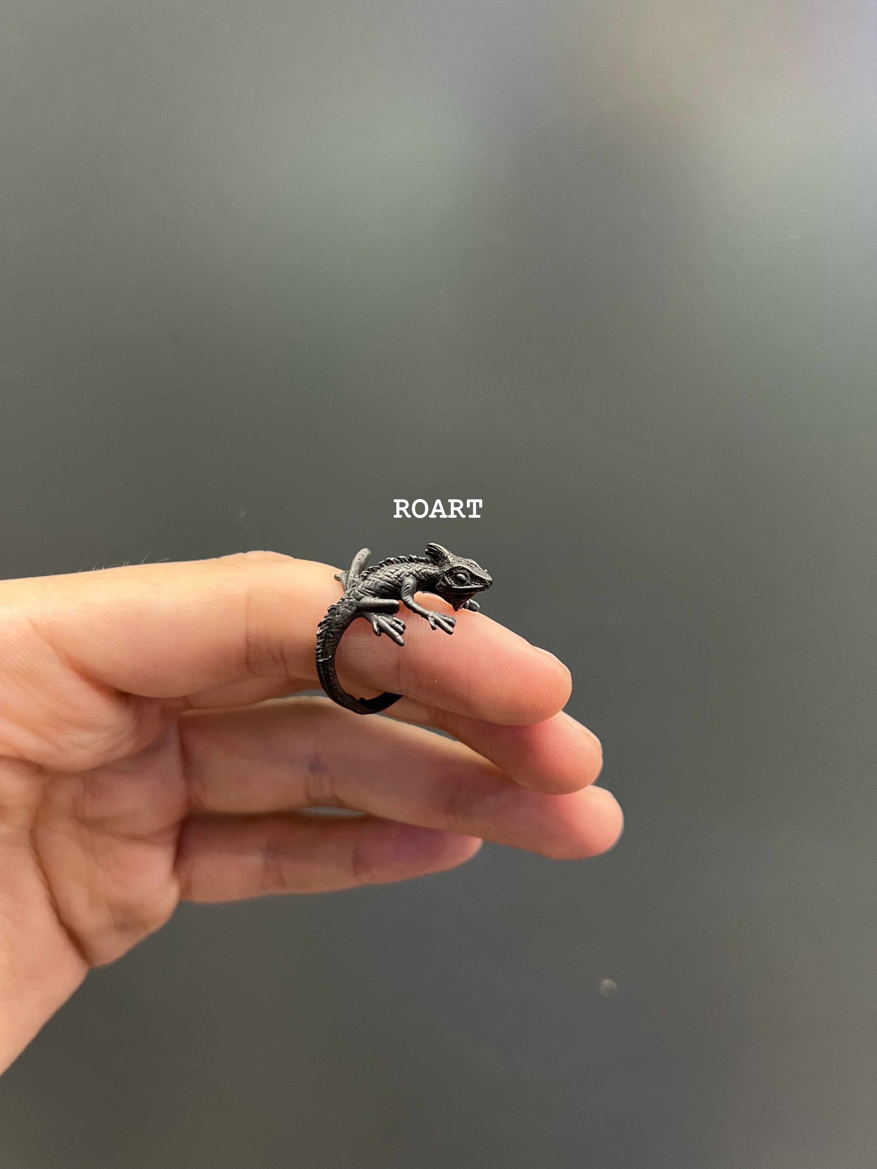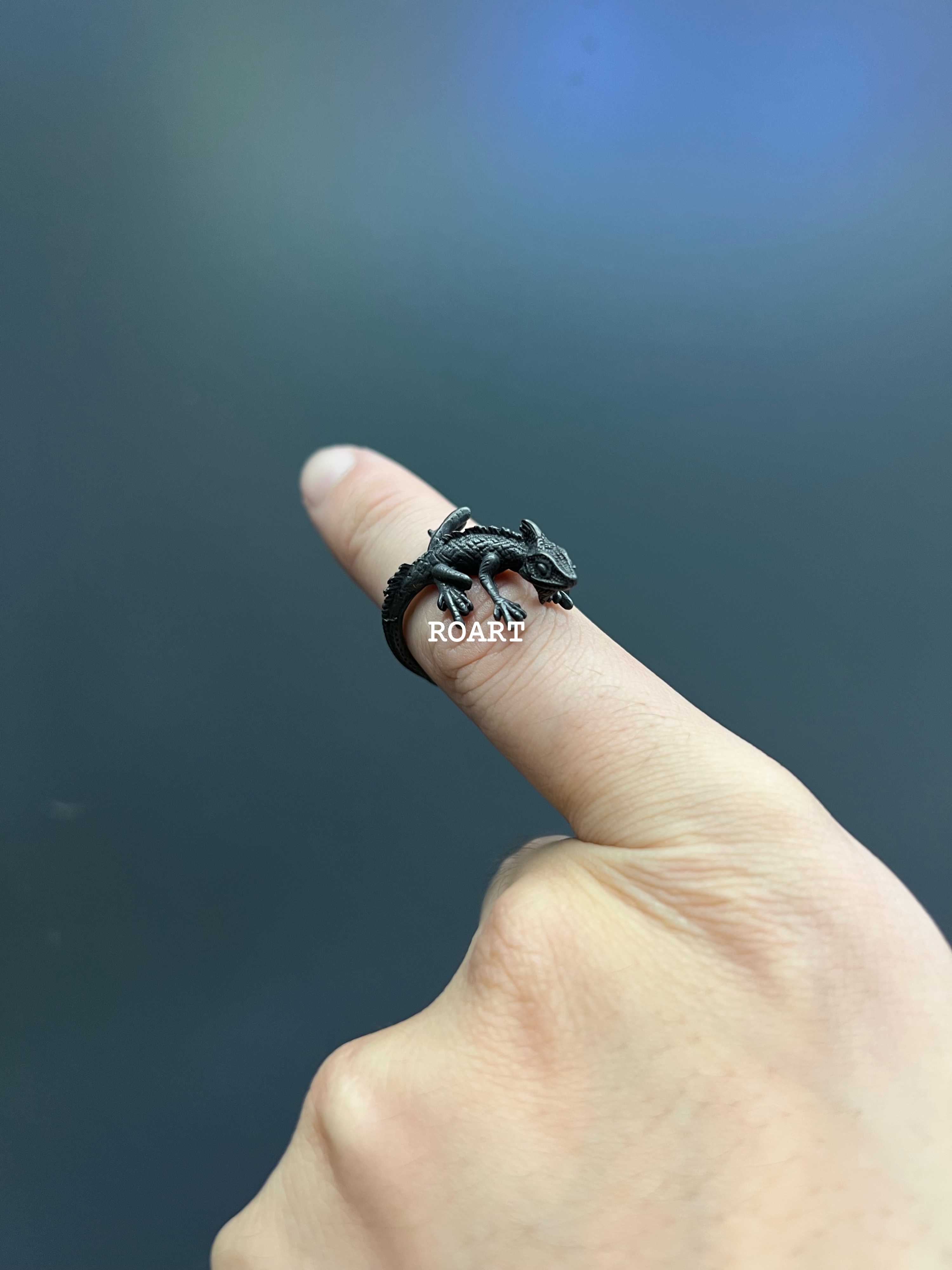 蜥蜴戒指暗黑设计的纯手工日本蜥蜴纯铜戒指自由调节角度