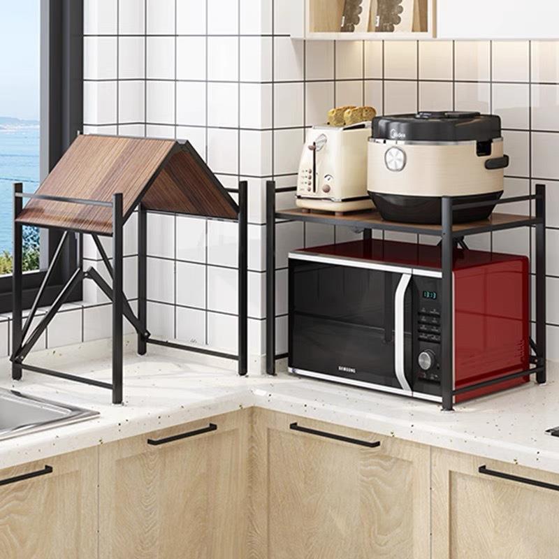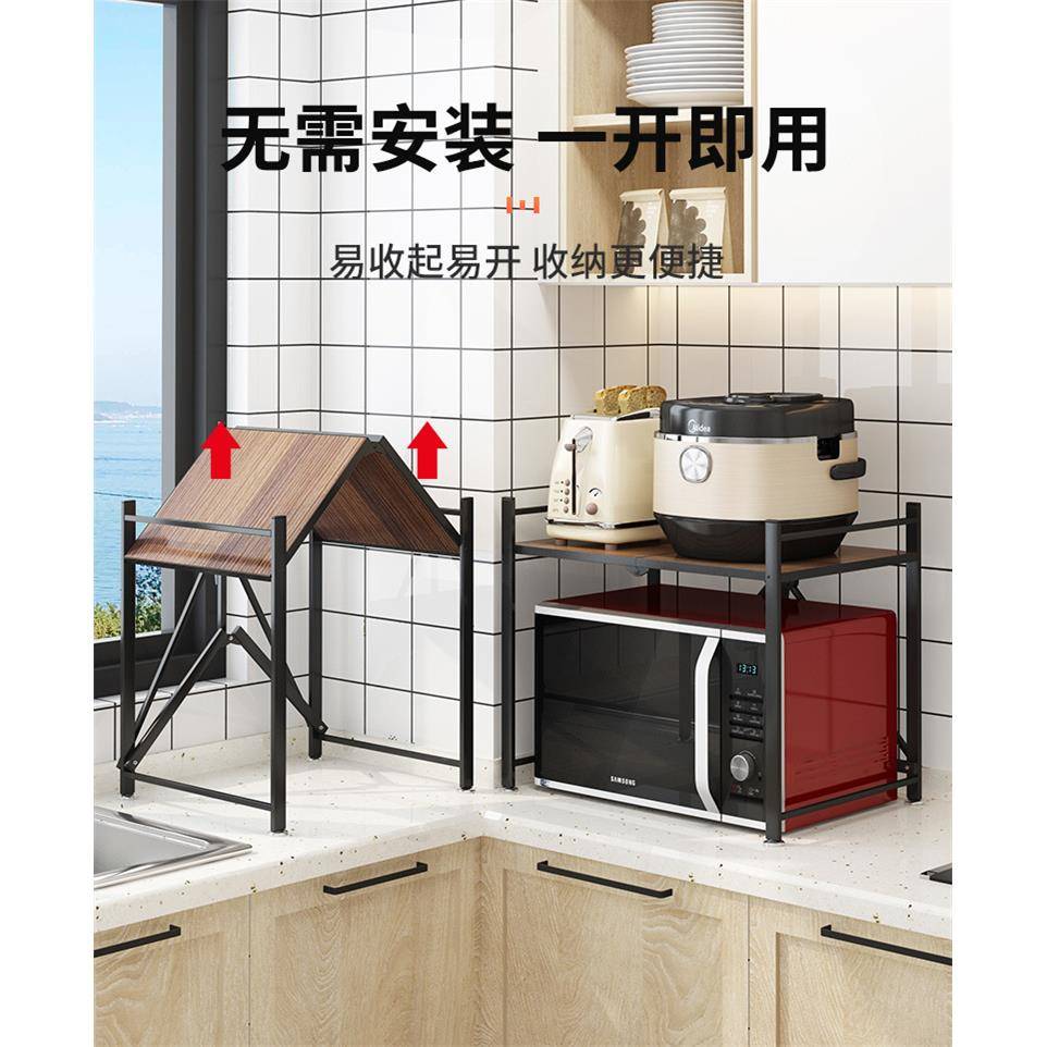 厨房简约免安装微波炉置物架可折叠双层台面烤箱调味料用品收纳架