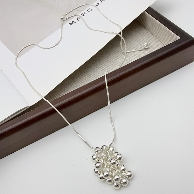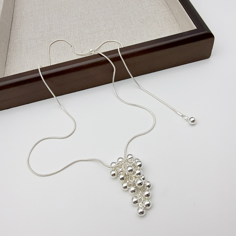 东大门欧尼同款银色 葡萄串珠项链女款卫衣链韩系颈链抽拉配饰