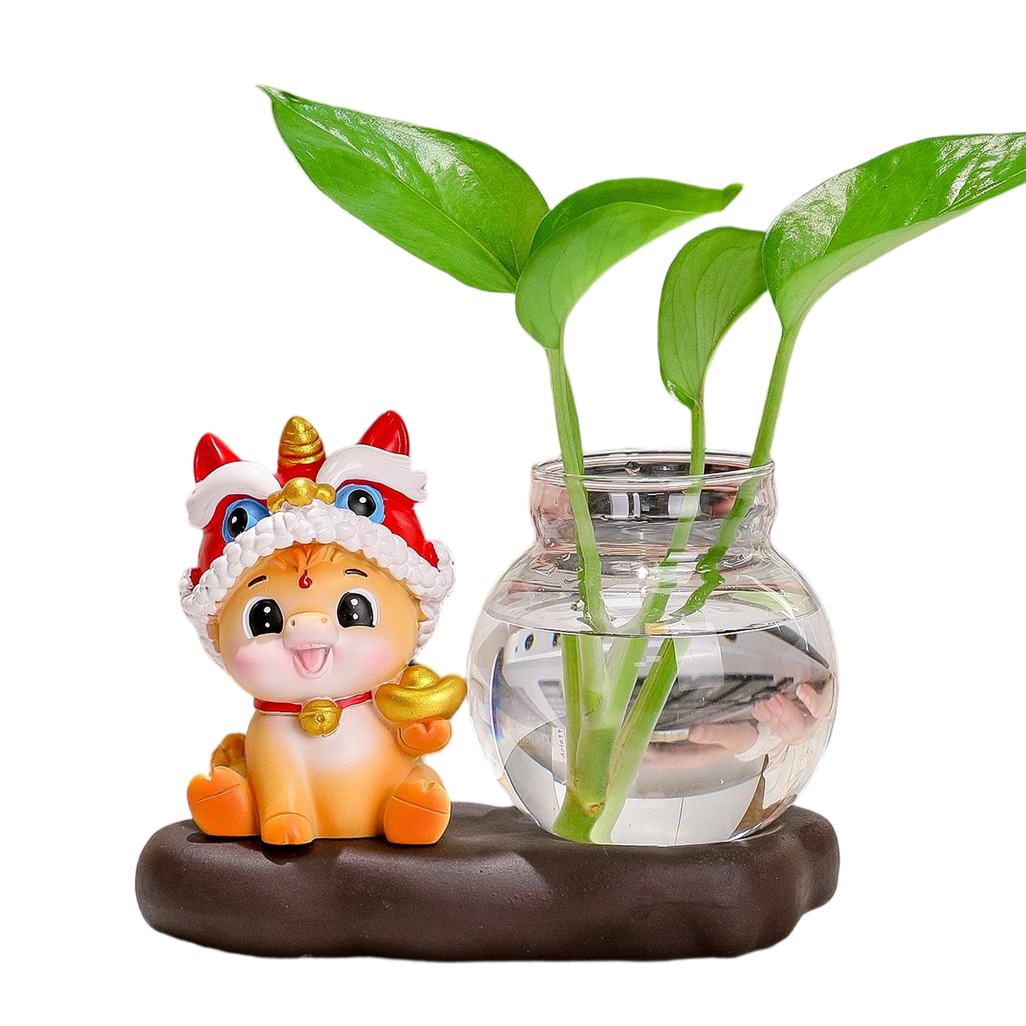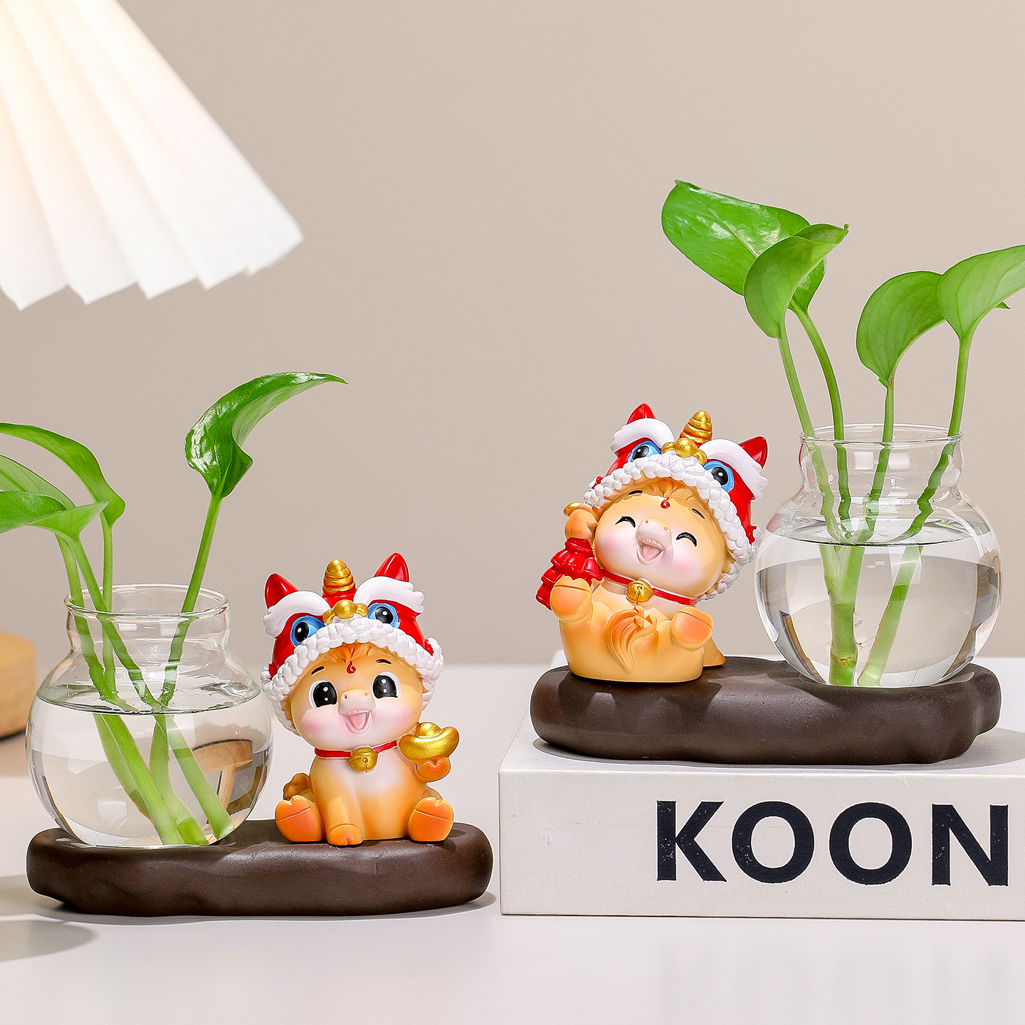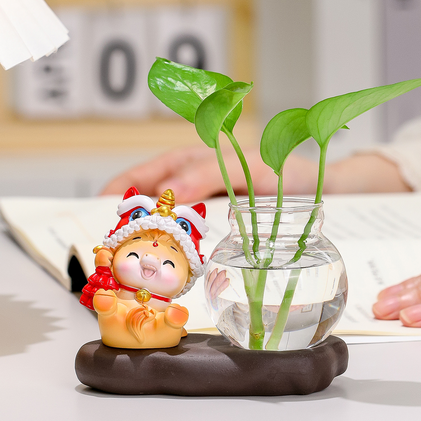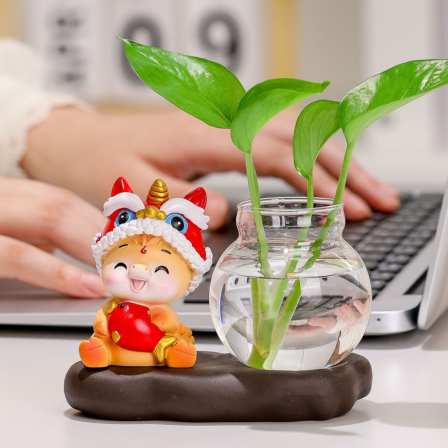 国潮马水培玻璃透明花瓶树脂工艺品水养花盆养绿萝室内装饰小摆件