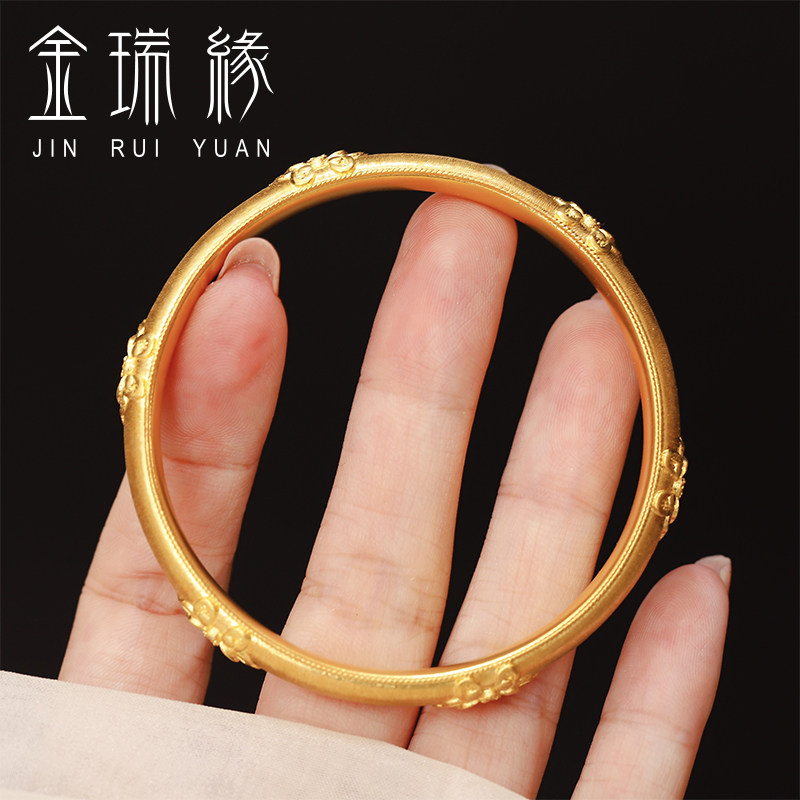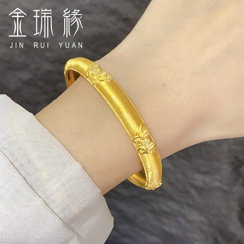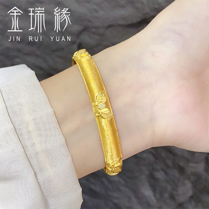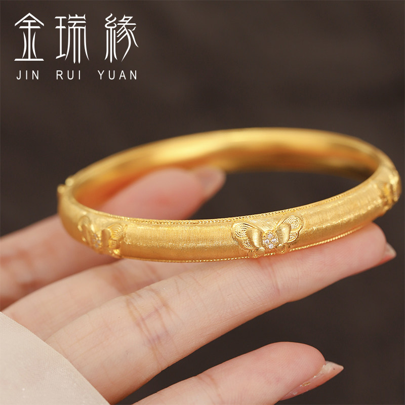 黄金拉丝蝴蝶手镯女款999足金镶嵌莫桑钻实心镯子纯金送老婆礼物