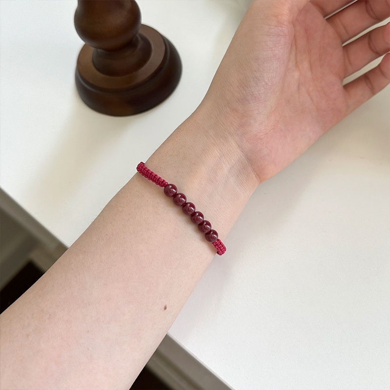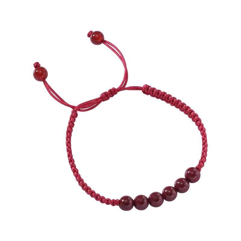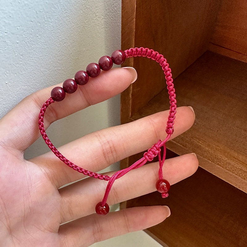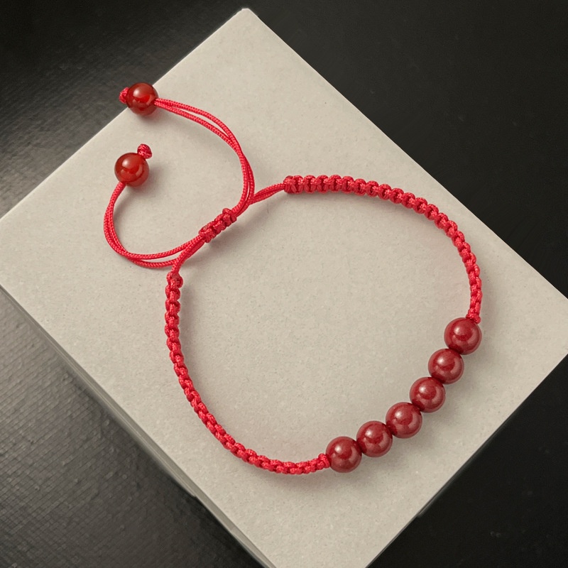 美汝仙 朱砂手链国朝风编制手绳护身符饰品抽拉式可调节轻奢高级