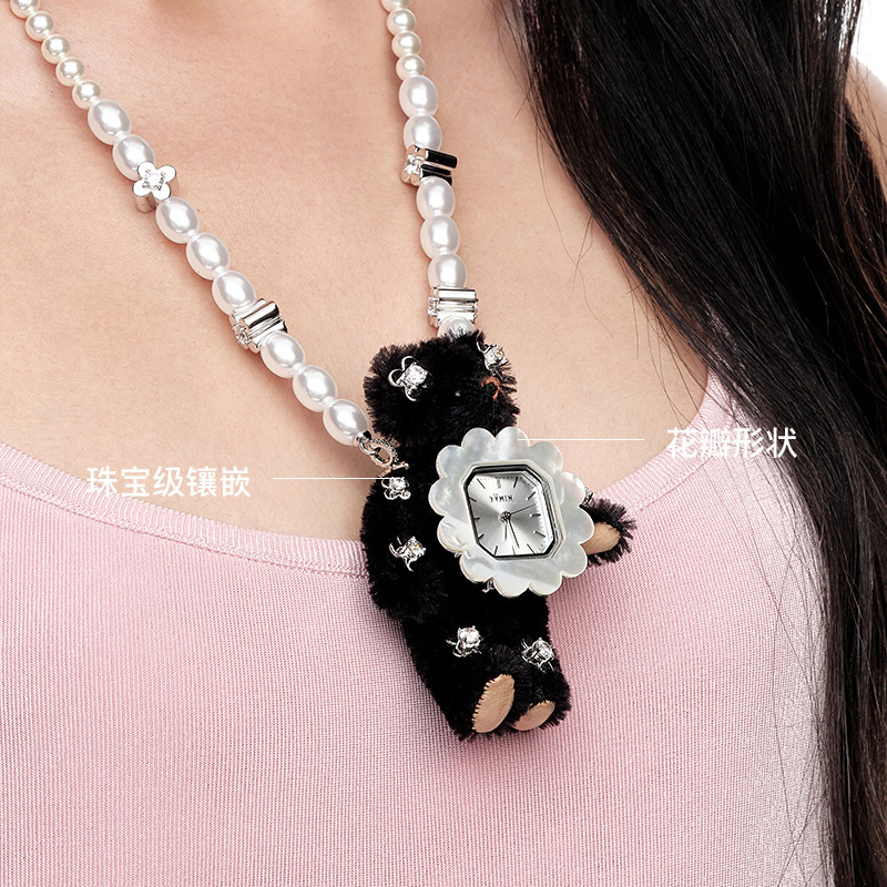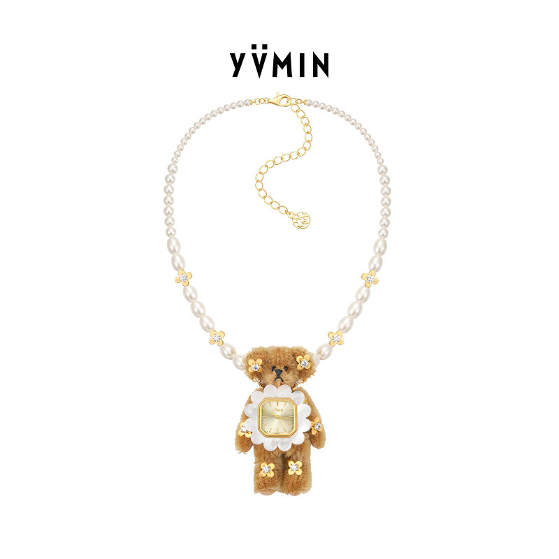 YVMIN尤目 花边表盘镶嵌宝石熊项链表毛衣链设计师圣诞生日礼物