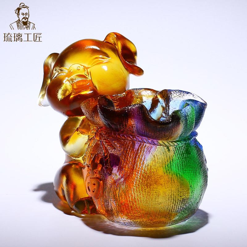 琉璃工艺品福猪笔筒办公室老板桌面装饰摆件领导高档属猪的吉祥物