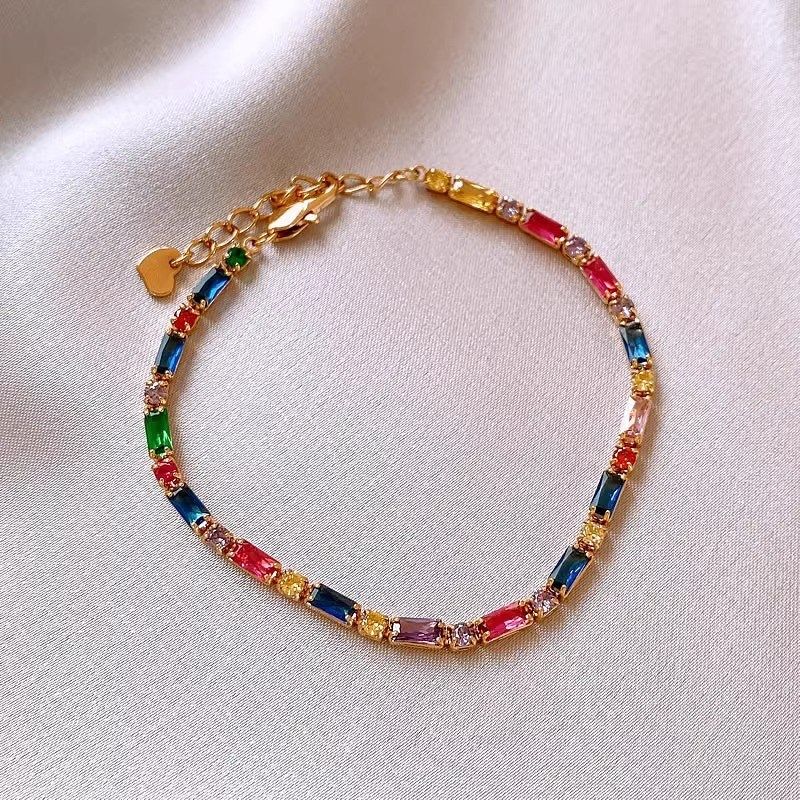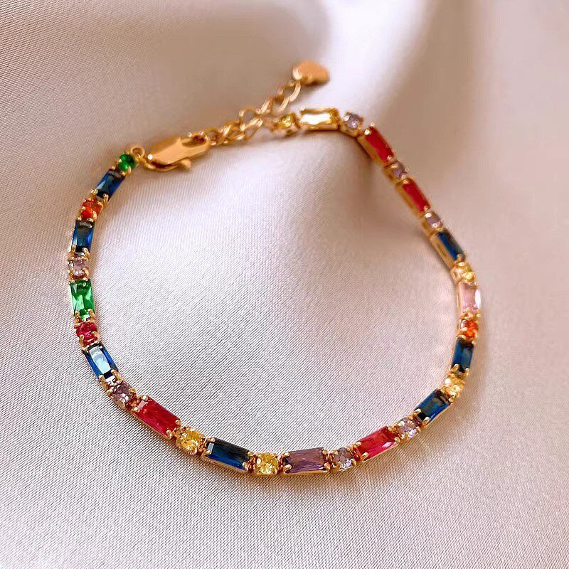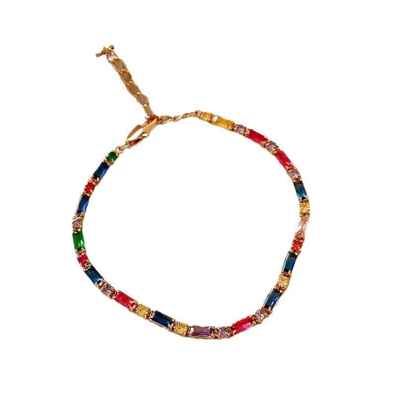 复古彩色多巴胺夏日水晶手链女轻奢小众精致手绳R祖母绿手表扣手