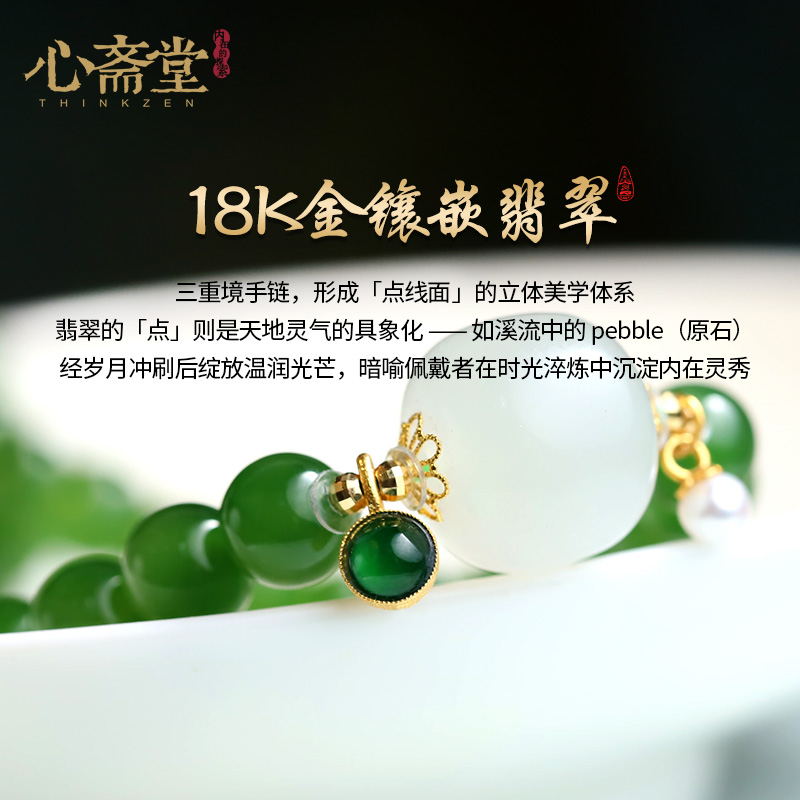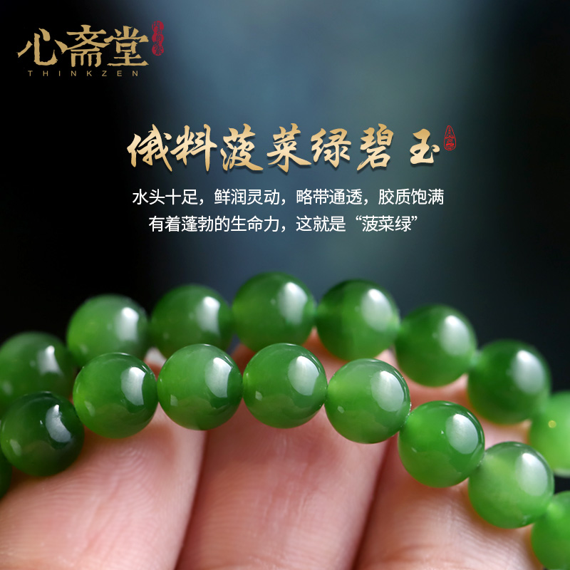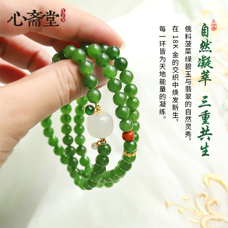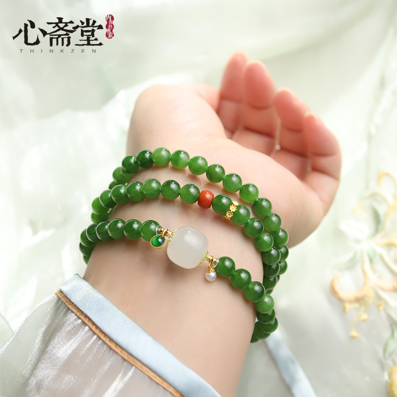 心斋堂【三重境】收藏俄料菠菜绿碧玉三圈手链和田玉手串高档礼物