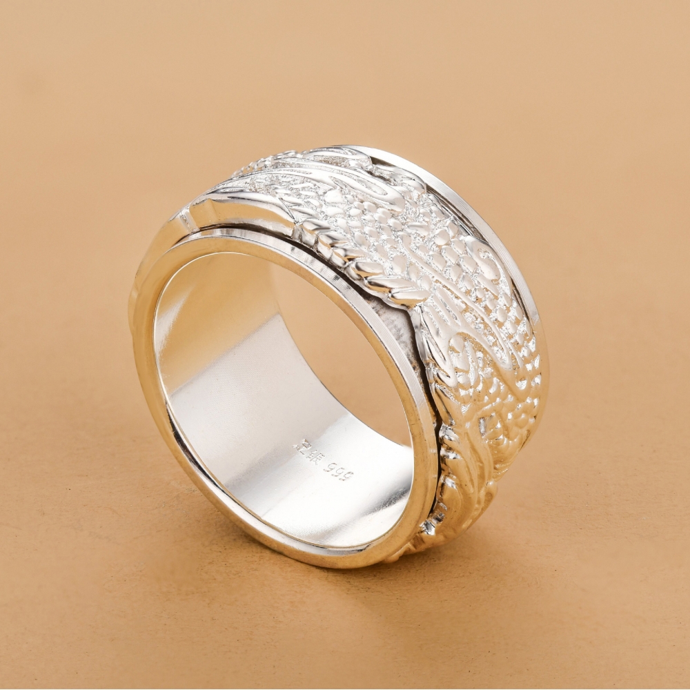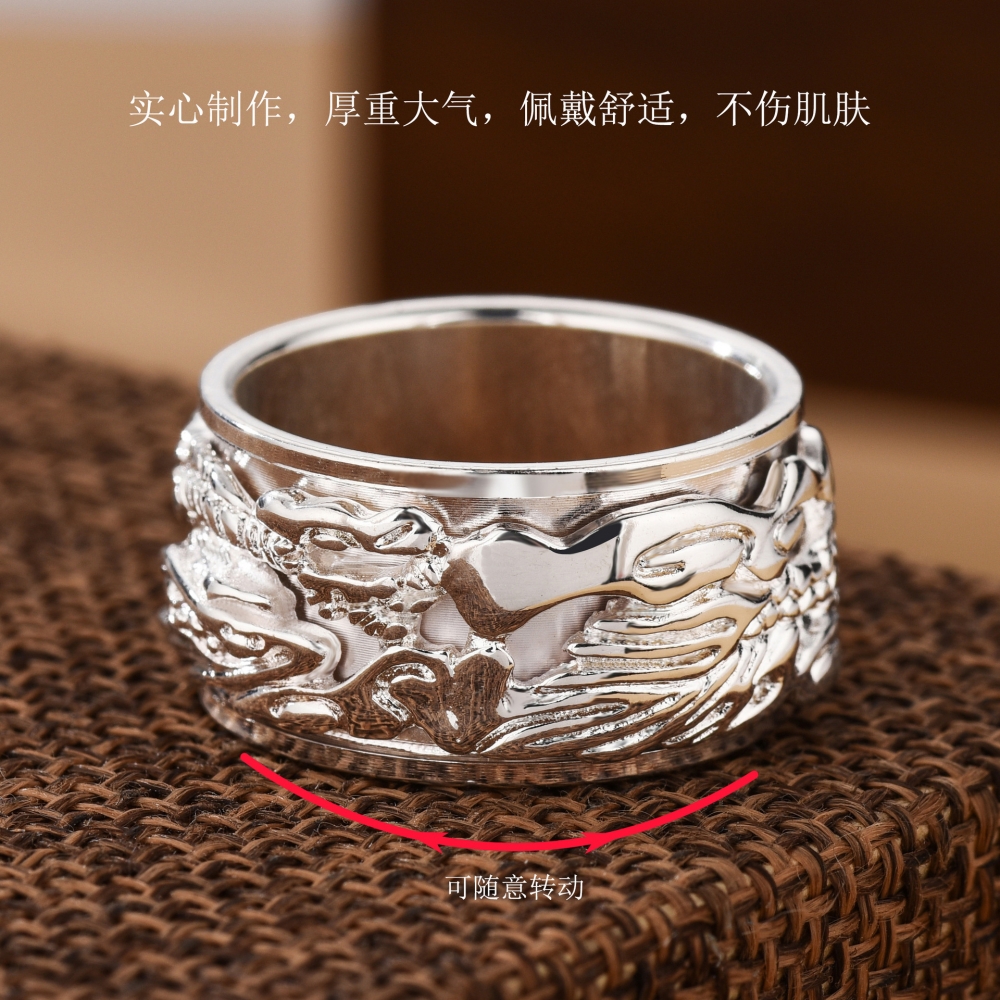 999纯银祥龙旋转戒指个性男士可转动宽面霸气单身解压设计感食指