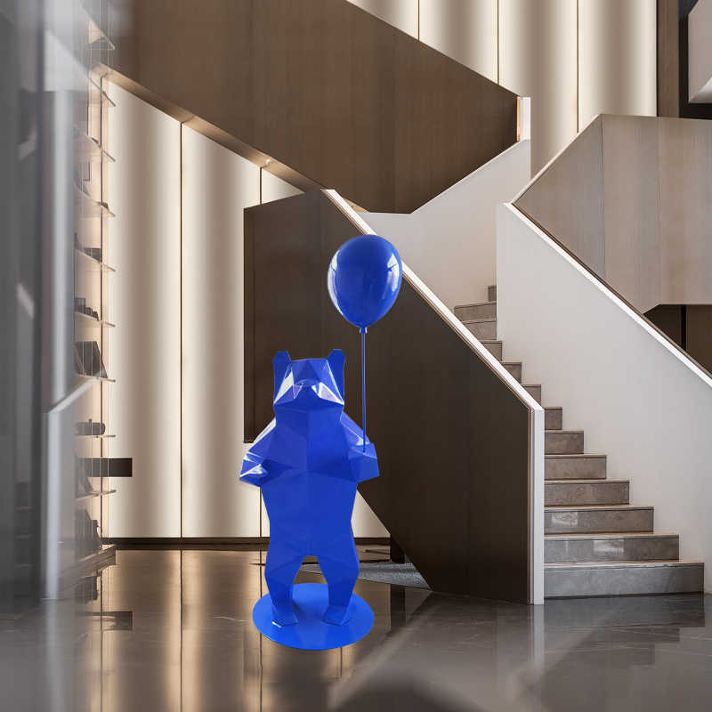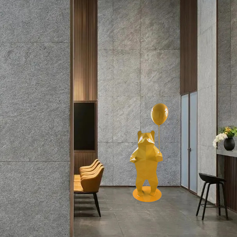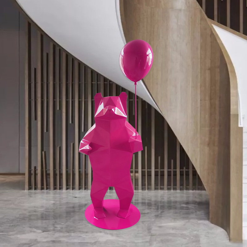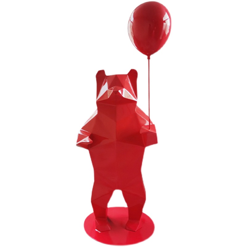 酒店大厅网红卡通玻璃钢多边形红色熊雕塑室内售楼处北极熊大摆件