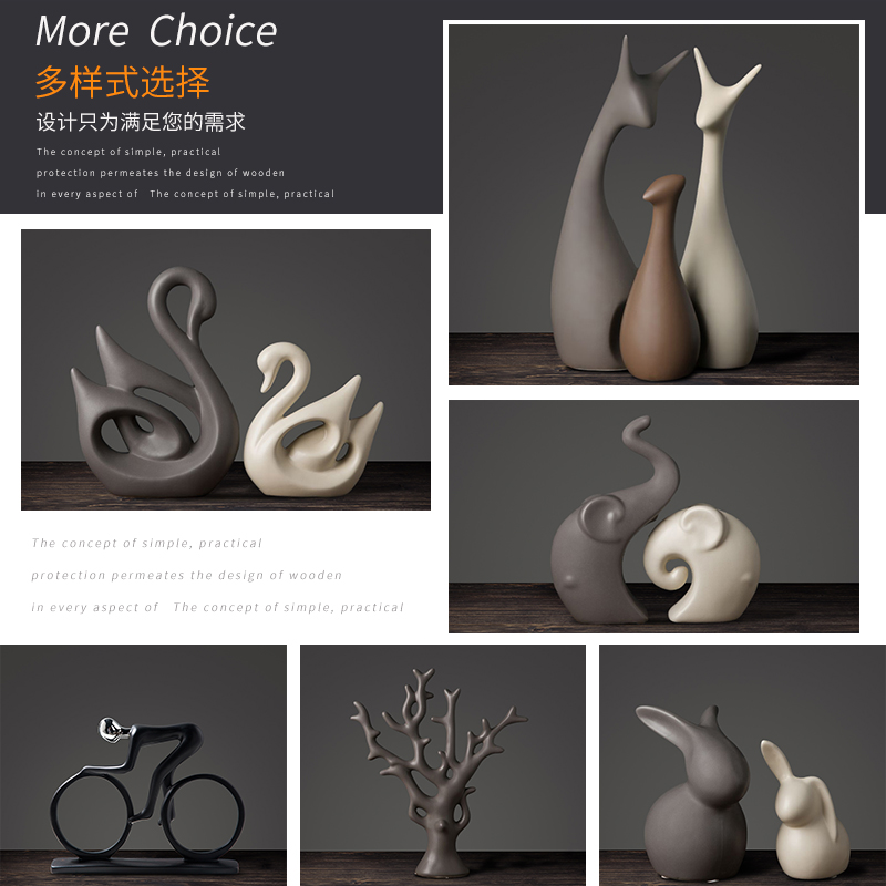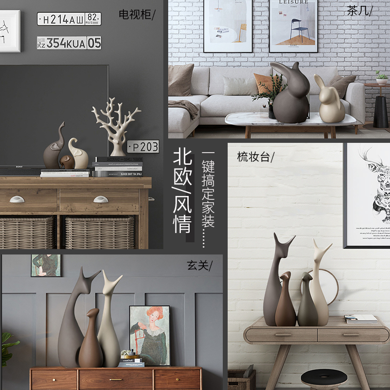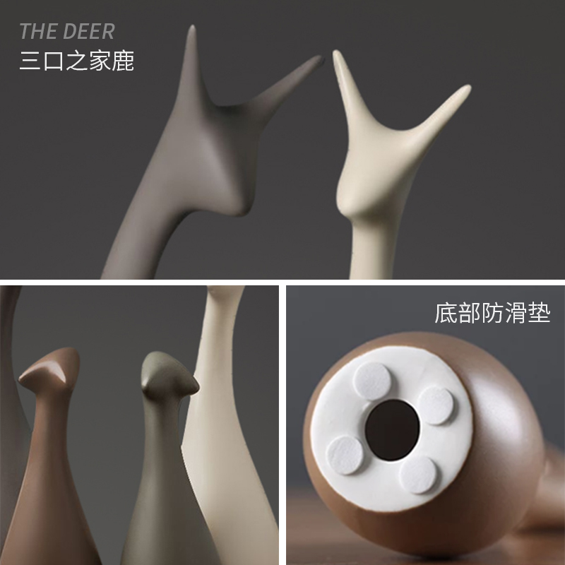 北欧风格摆件一家三四口鹿陶瓷家居创意客厅电视酒柜现代装饰品