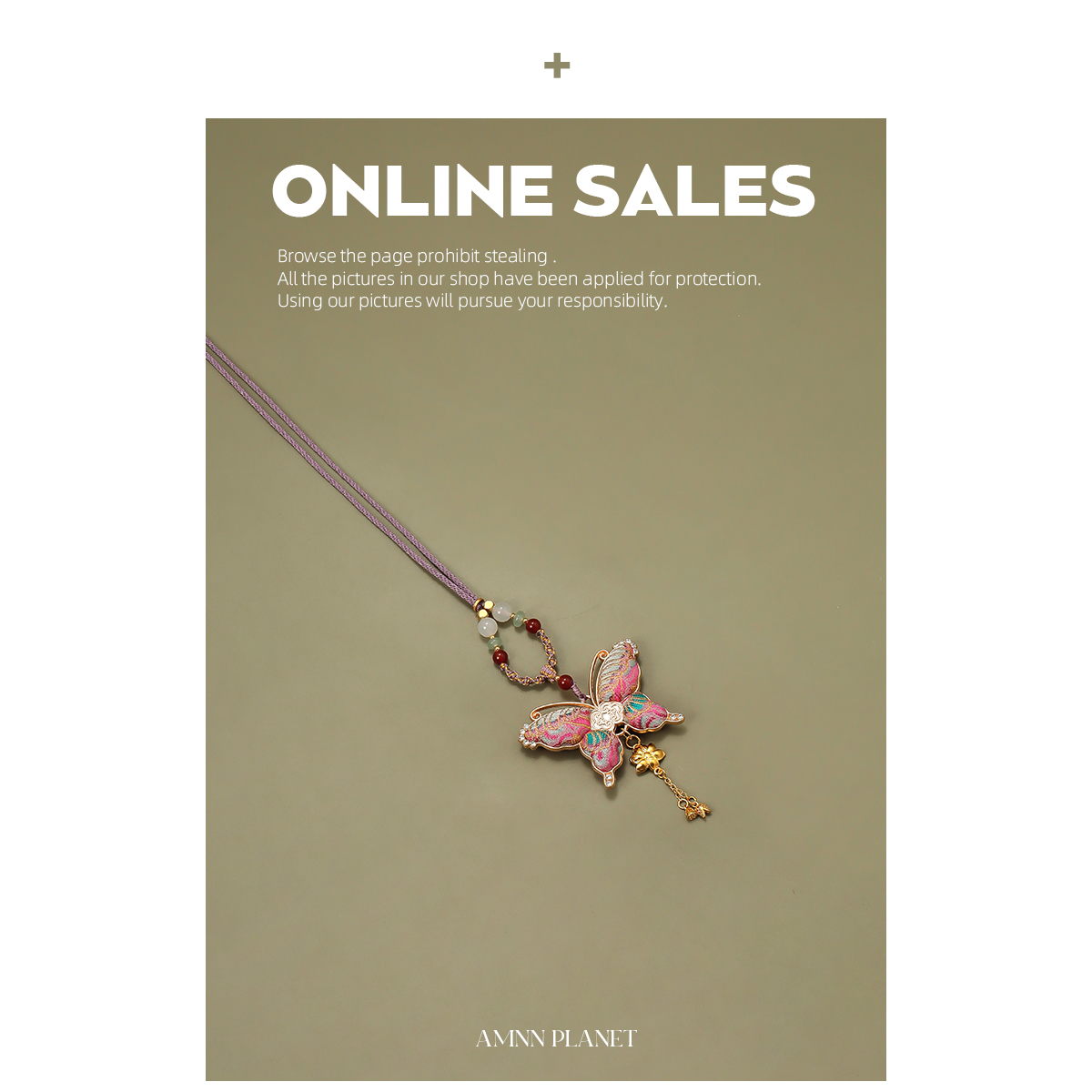 AMNN东方美学宋锦双面蝴蝶手工项链轻奢小众旗袍汉服配饰流苏挂件