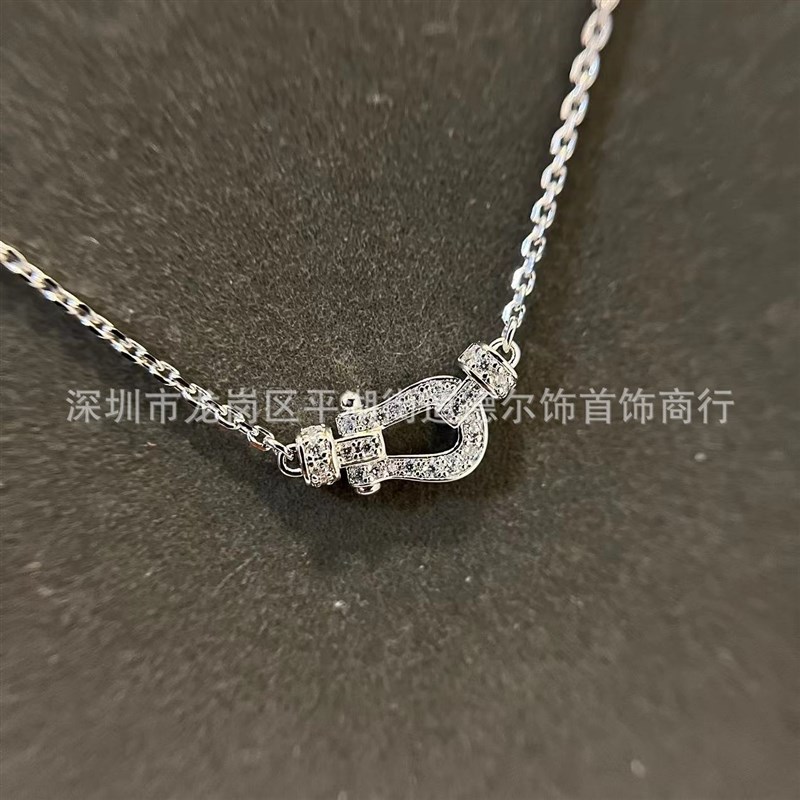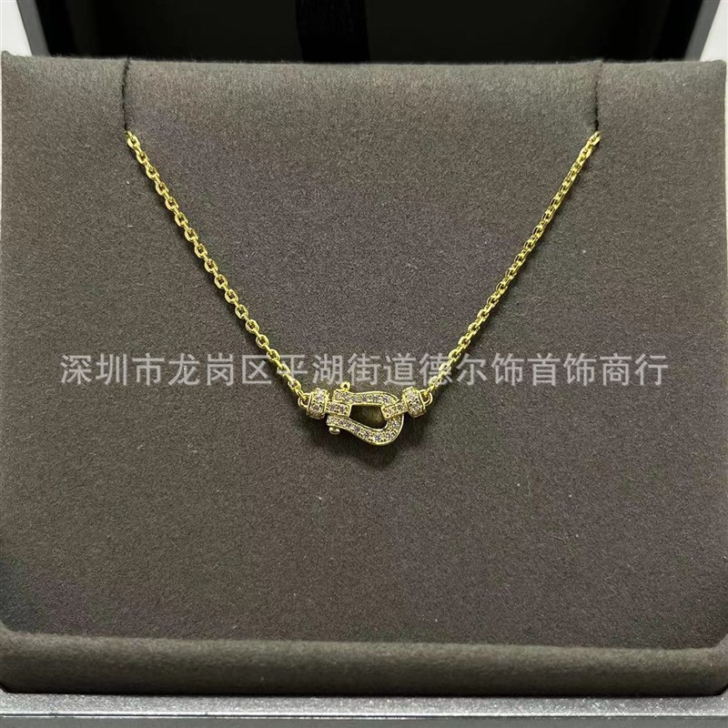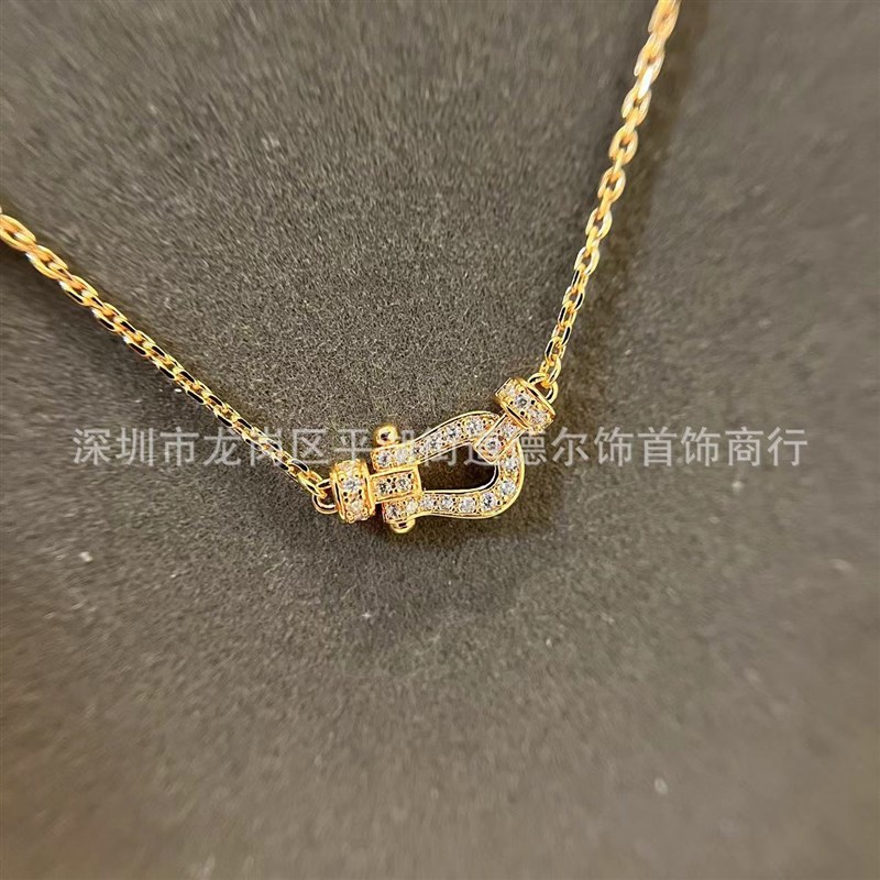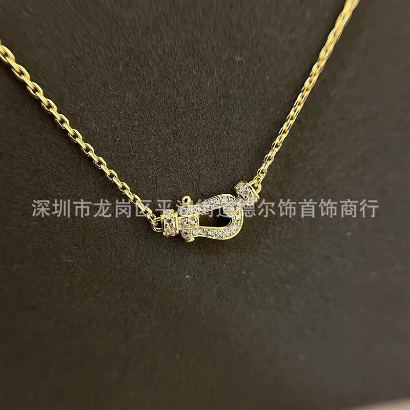 V金镀咪金 mini满钻马蹄扣项链手镶钻小巧精致女生锁骨链厂家直销