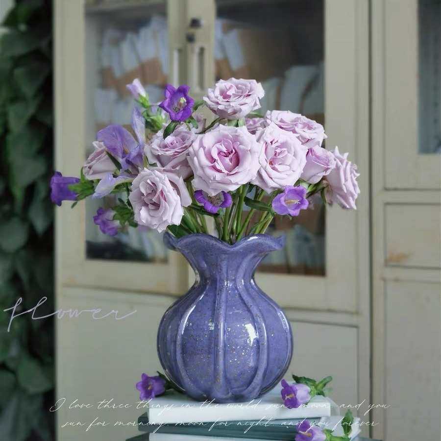 手工制作香芋紫色飘金粉花瓶彩色花朵花瓶装饰家居简约设计师软装