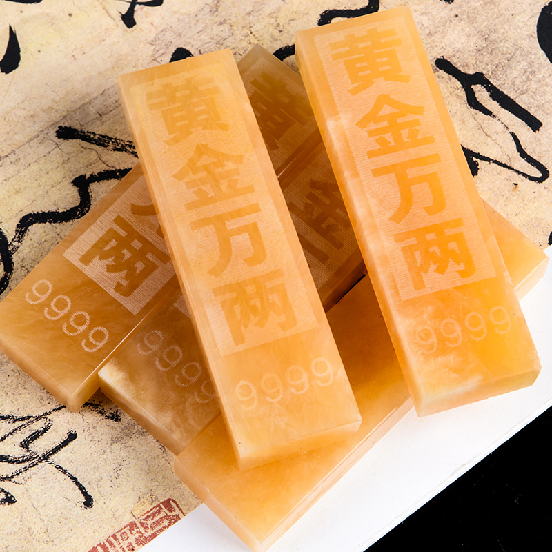 速发米黄玉金条元宝摆石 招厅转运玉件家居客财装饰品