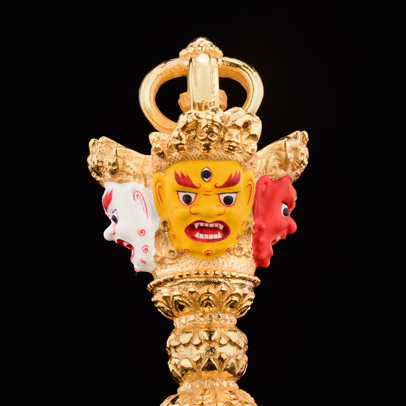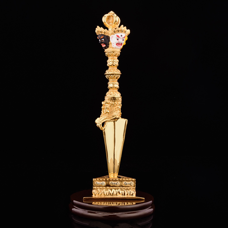 普巴金刚杵摆件三面金刚橛客厅法器用品台湾盛凡铜鎏金金刚杵带座