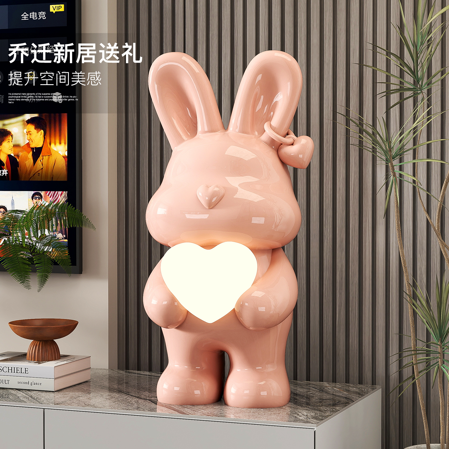爱心潮玩兔落地灯大型摆件客厅电视柜装饰品轻奢高档乔迁新居礼物