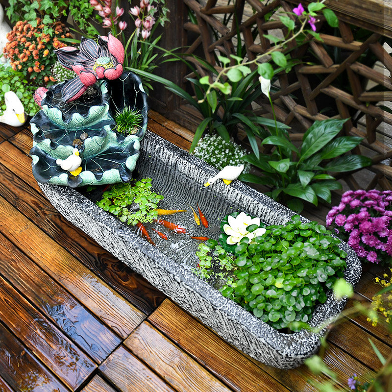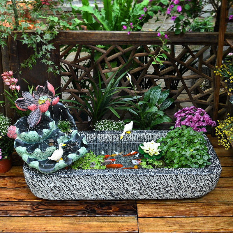 室外庭院花园布置鱼缸水池养水培植物盆景民宿景观喷泉流水摆件