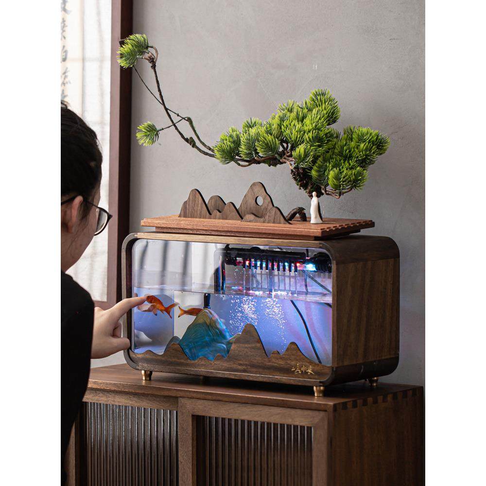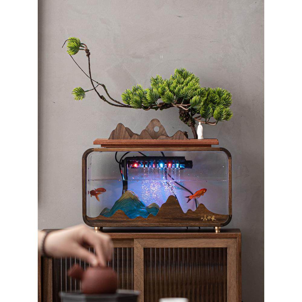 创意鱼缸流水摆件循环水客厅桌面金鱼缸水景观新中式软装家居饰品