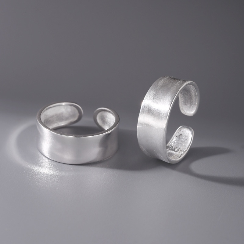美汝仙 纯银光面磨砂拉丝戒指女亮银色简约时尚港风个性开口指环