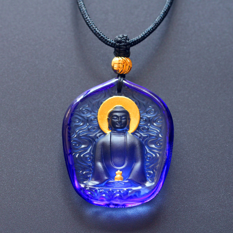 包邮古法琉璃佛像琉璃药师佛蓝色如来吊坠项链吉祥挂件运本命佛