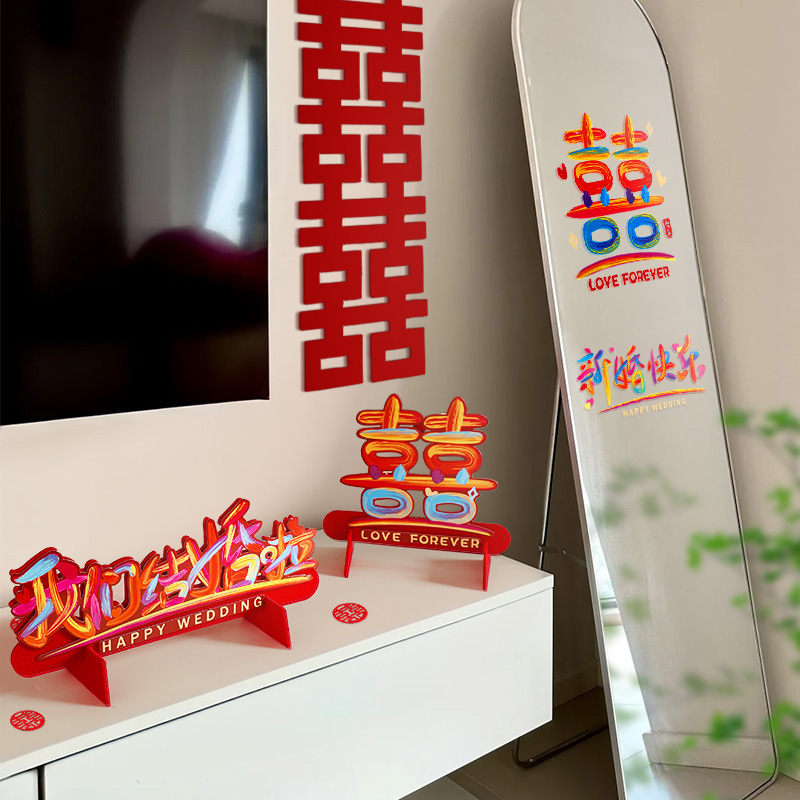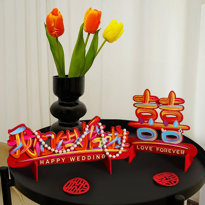 新人结婚摆件玄关立体喜字喜庆装饰品婚房布置桌子桌面客厅