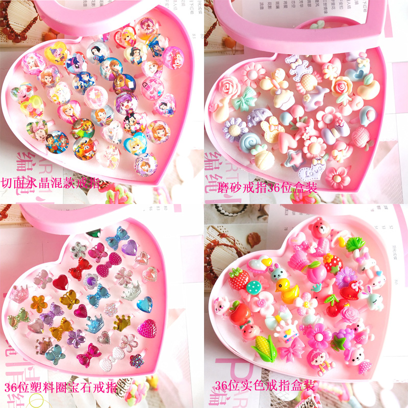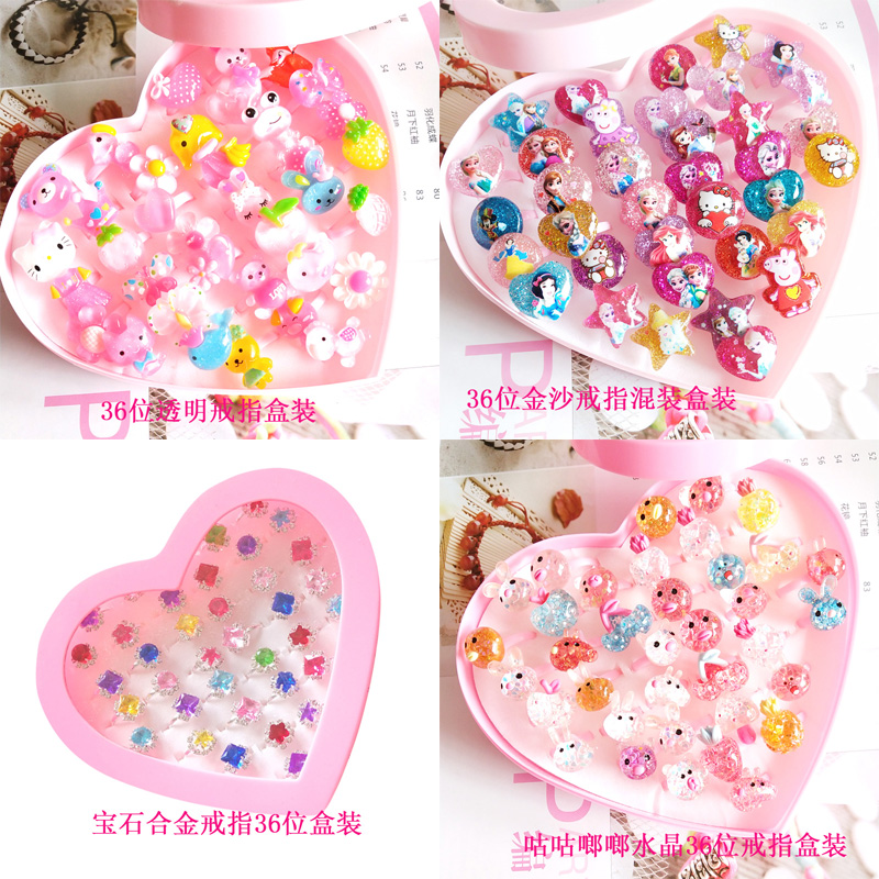 小指环儿童卡通戒指女孩公主玩具钻石礼物幼儿园奖品赠品盒装散装