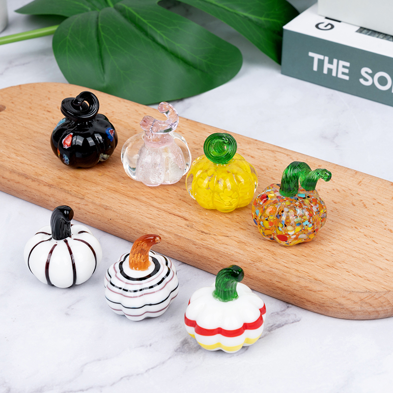 南瓜玻璃摆件创意桌面客厅摆饰彩色南瓜球形办公室可爱玻璃摆件